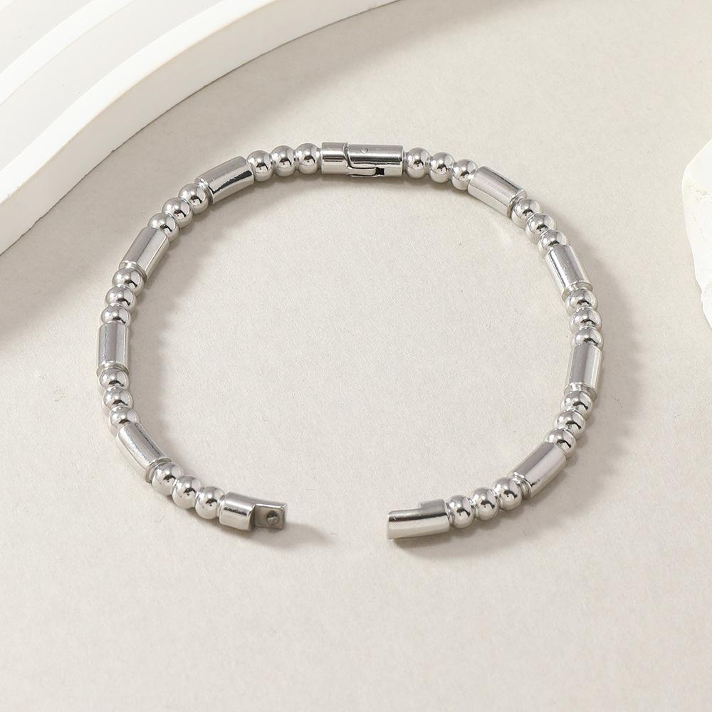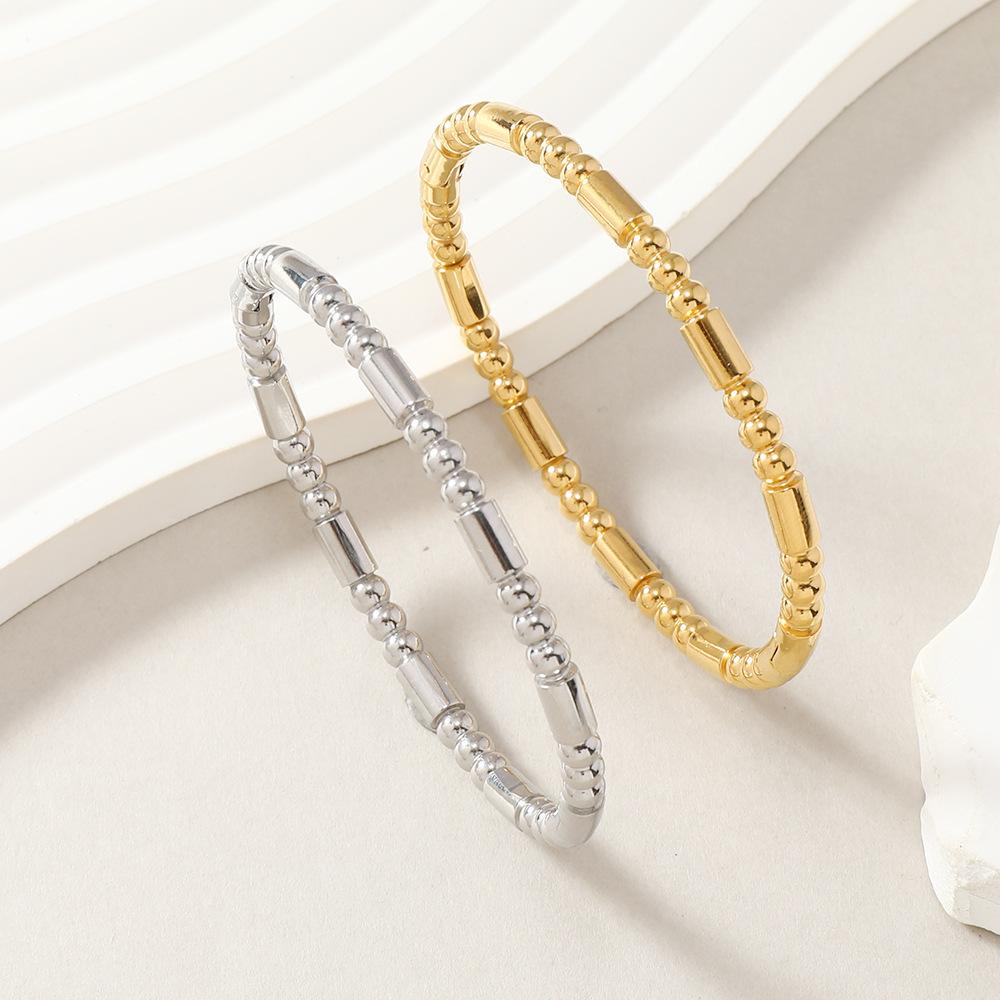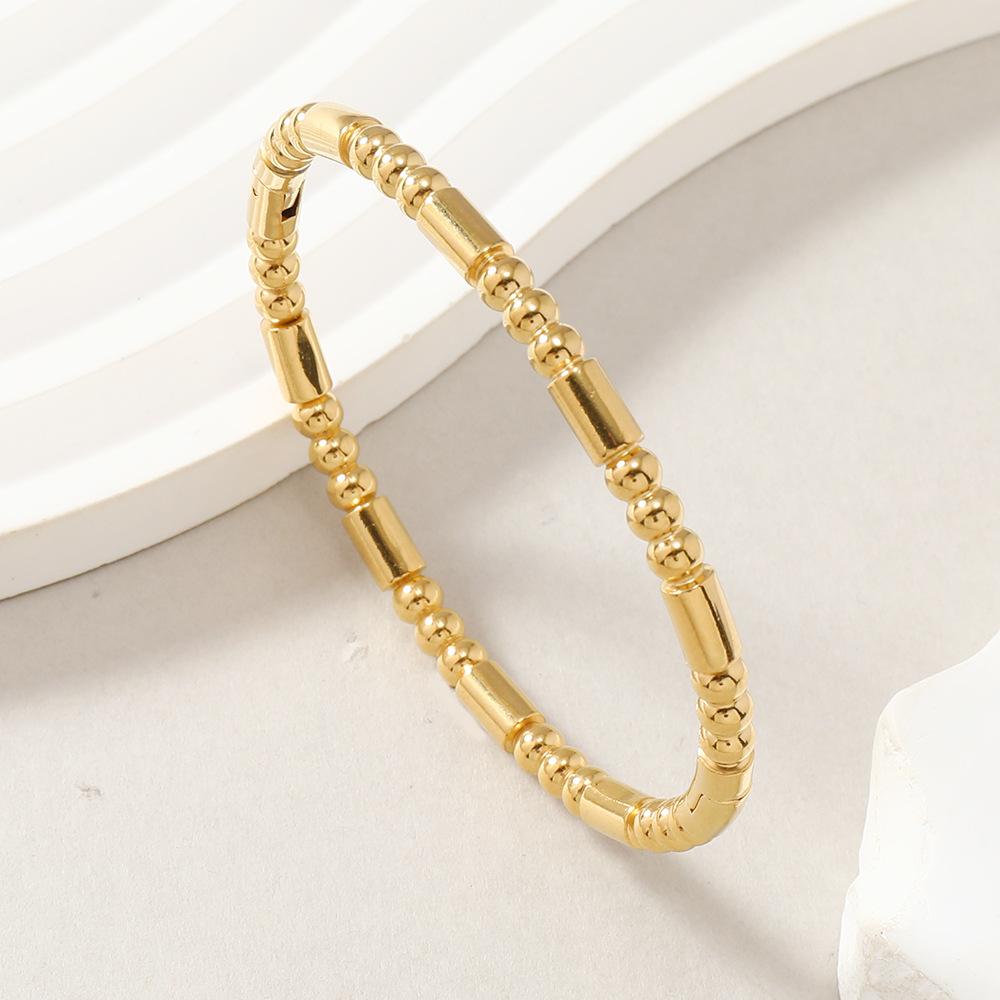 Joyería de acero inoxidable de venta caliente europea y americana, moda simple, pulsera de acero de titanio con cuentas redondas de bambú dorado, pulsera versátil y elegante