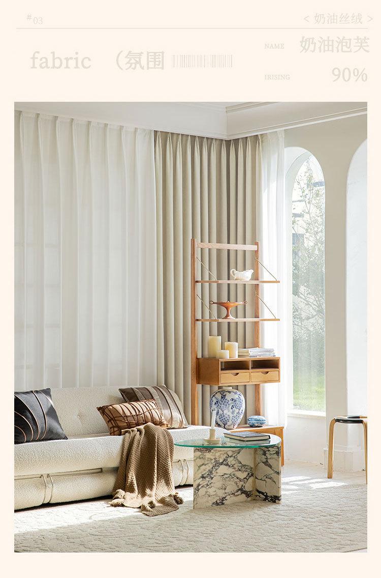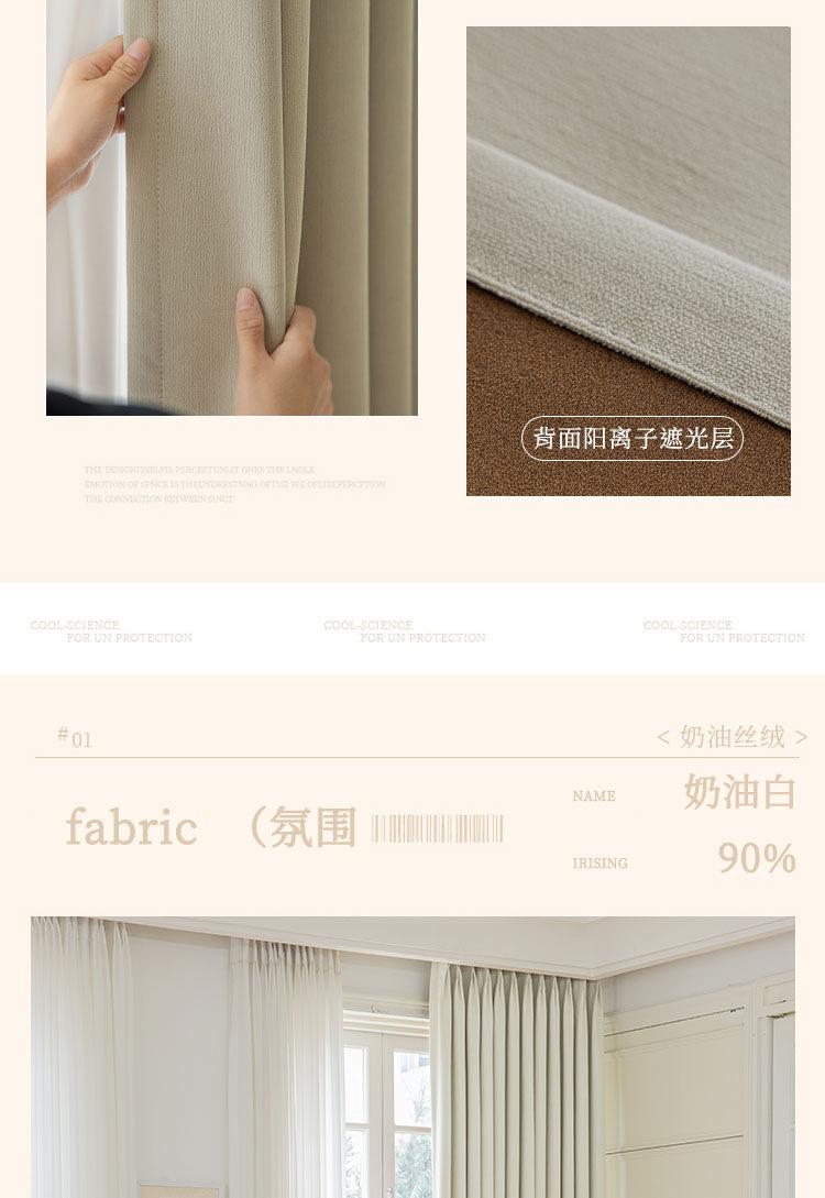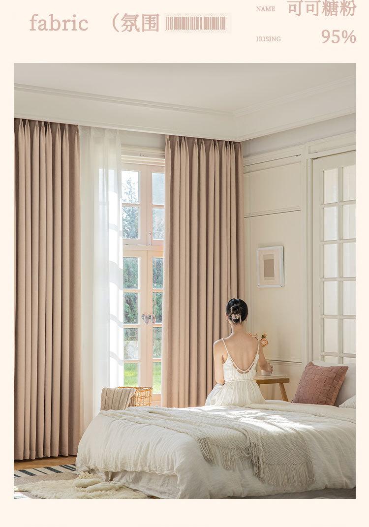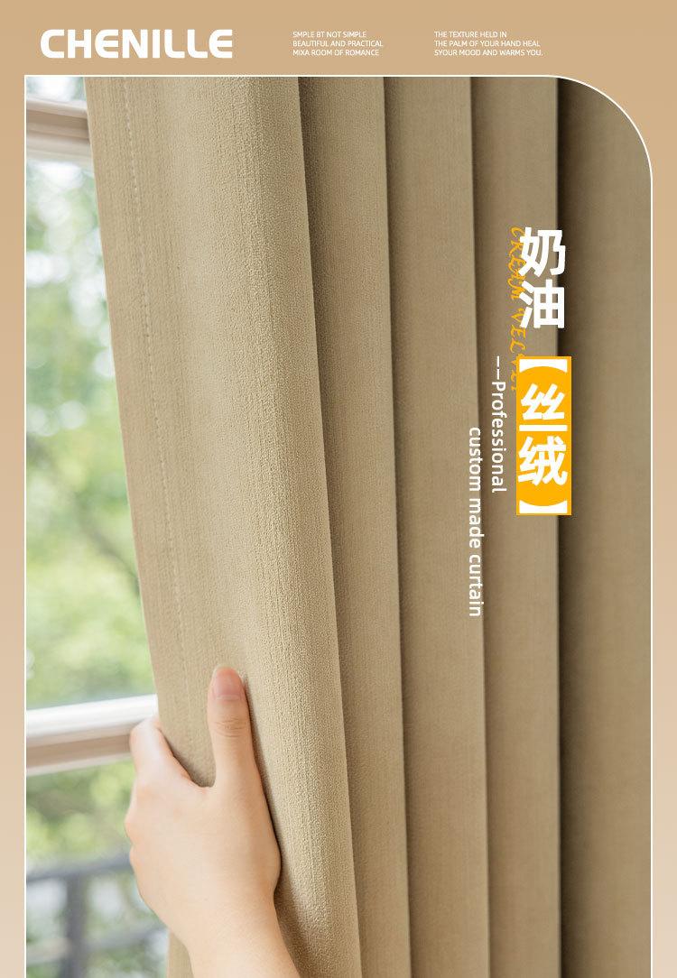 Cortina terminada al por mayor de Shaoxing, tela de cortina simple de terciopelo crema de chenilla gruesa con sombreado completo para dormitorio y sala de estar