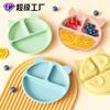Three-compartment dinner plate + silicone fork spoon (Brown)