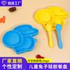 Three-compartment dinner plate + silicone fork spoon (Sky Blue)