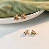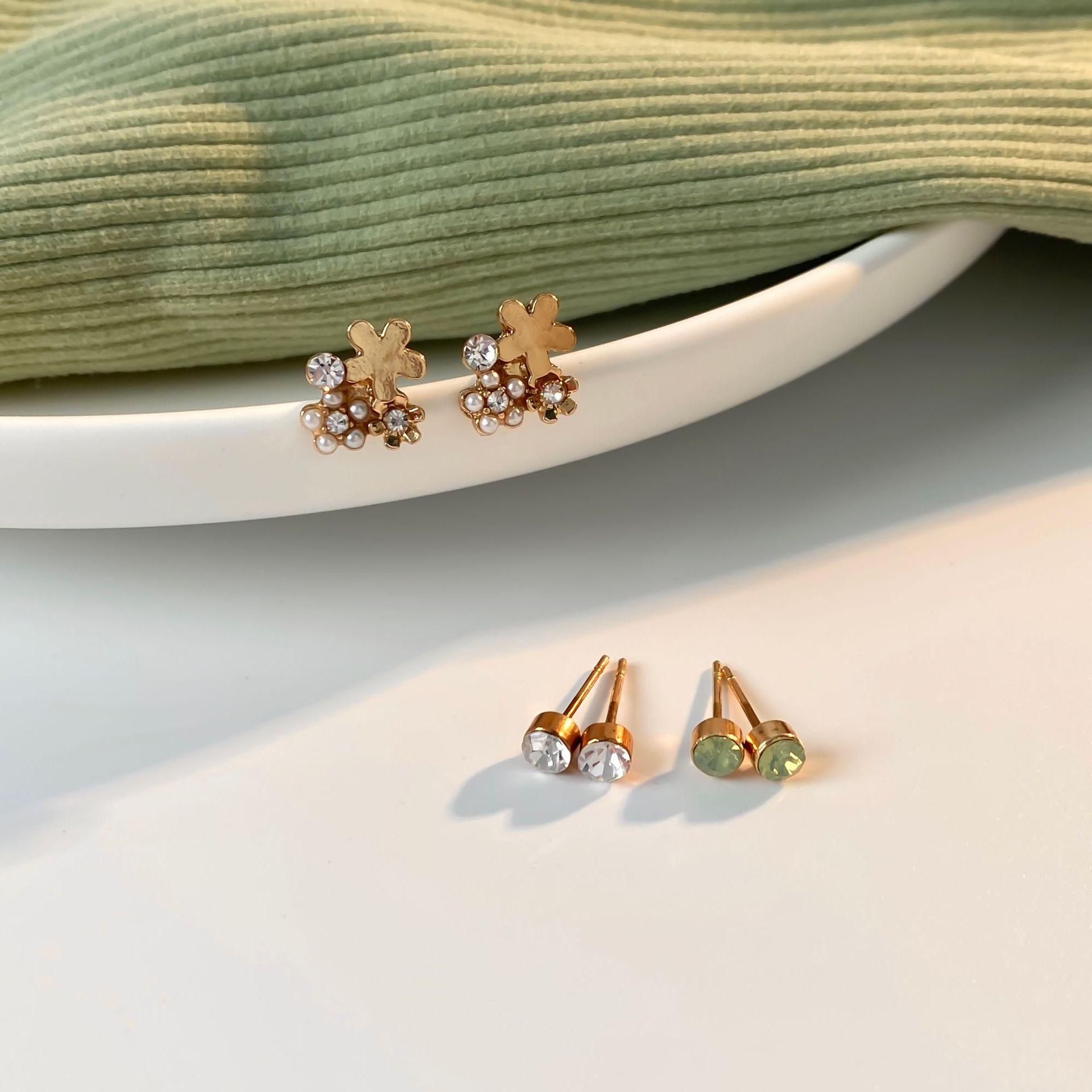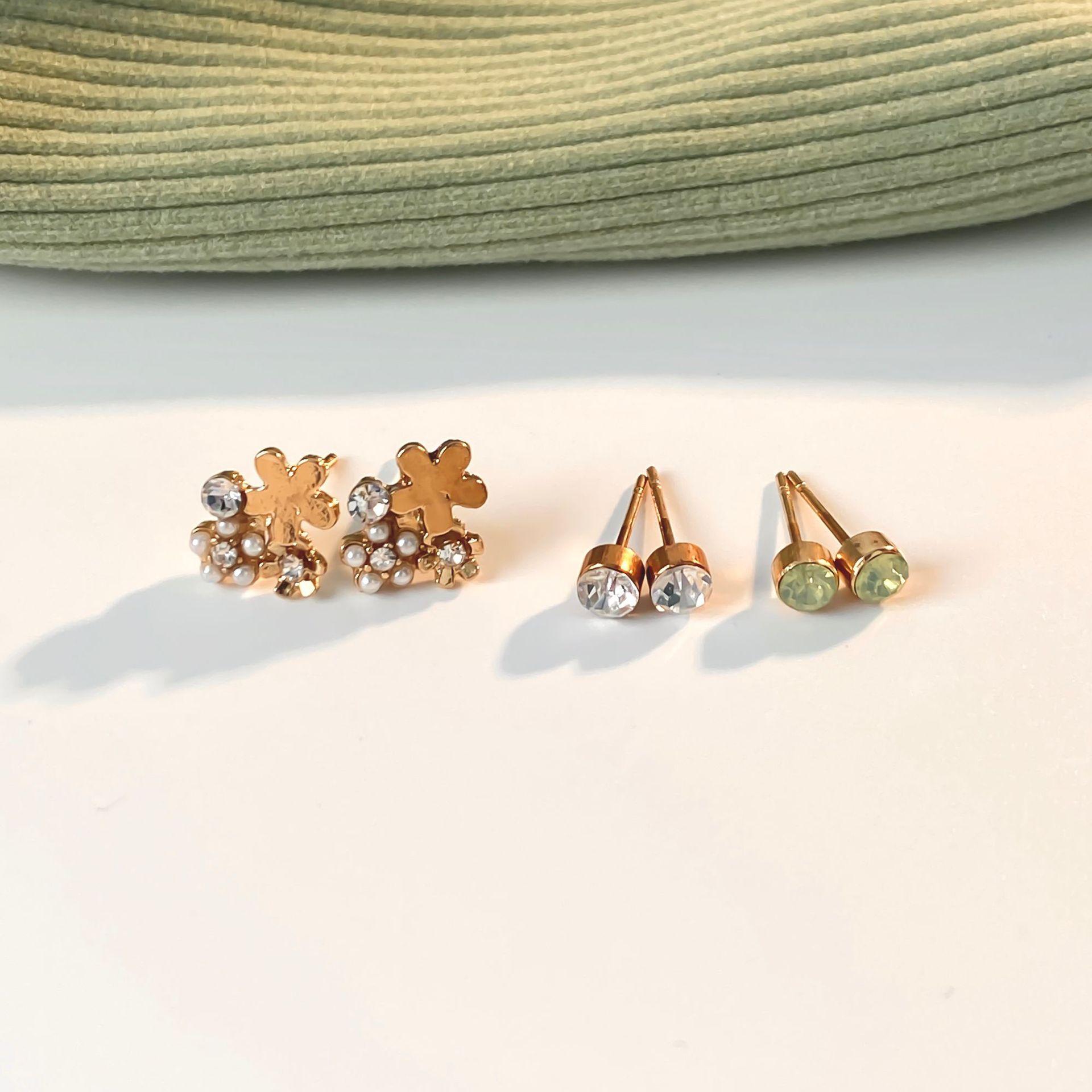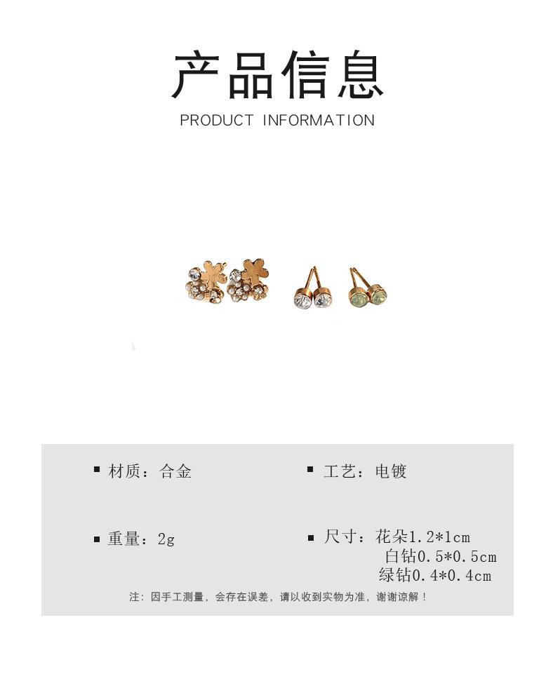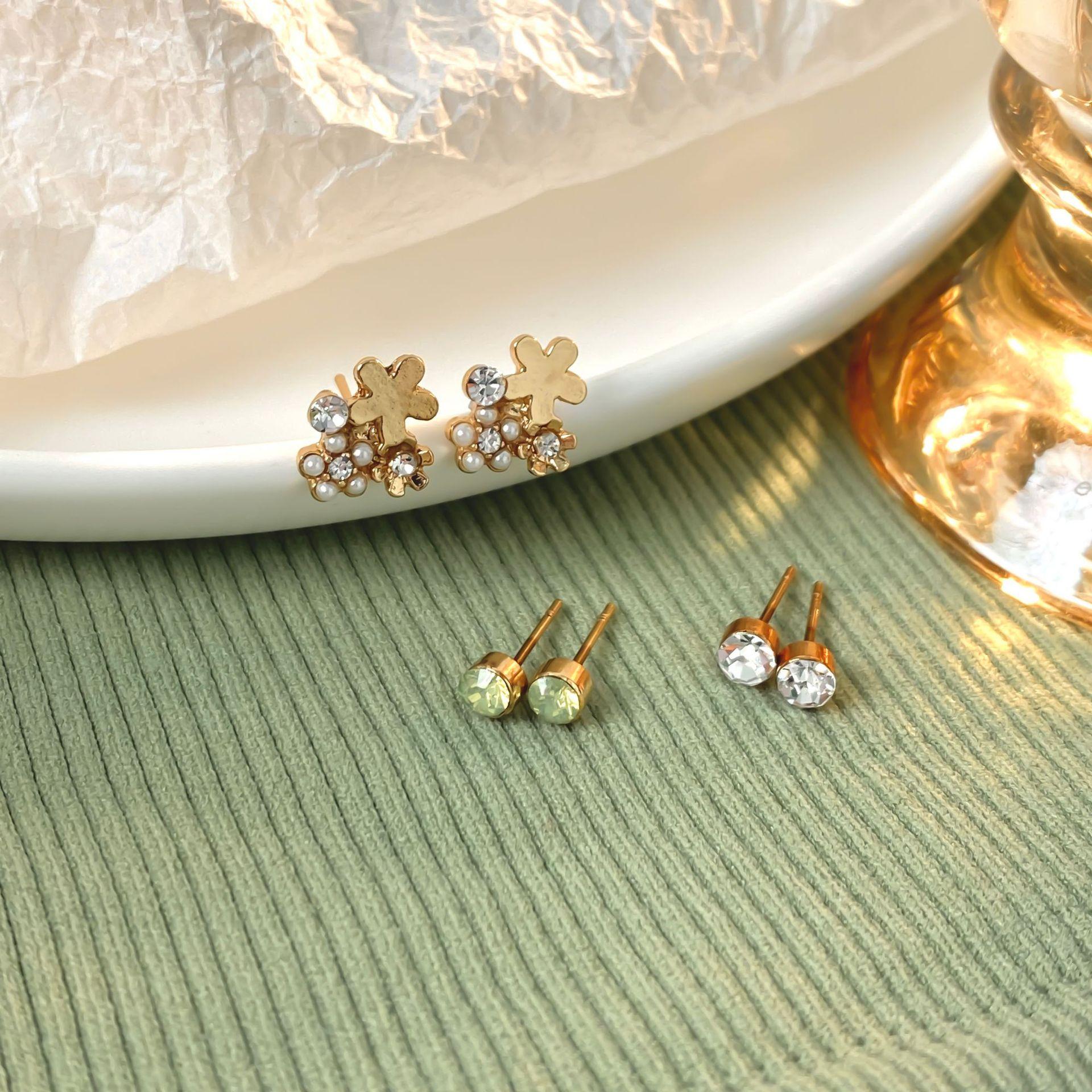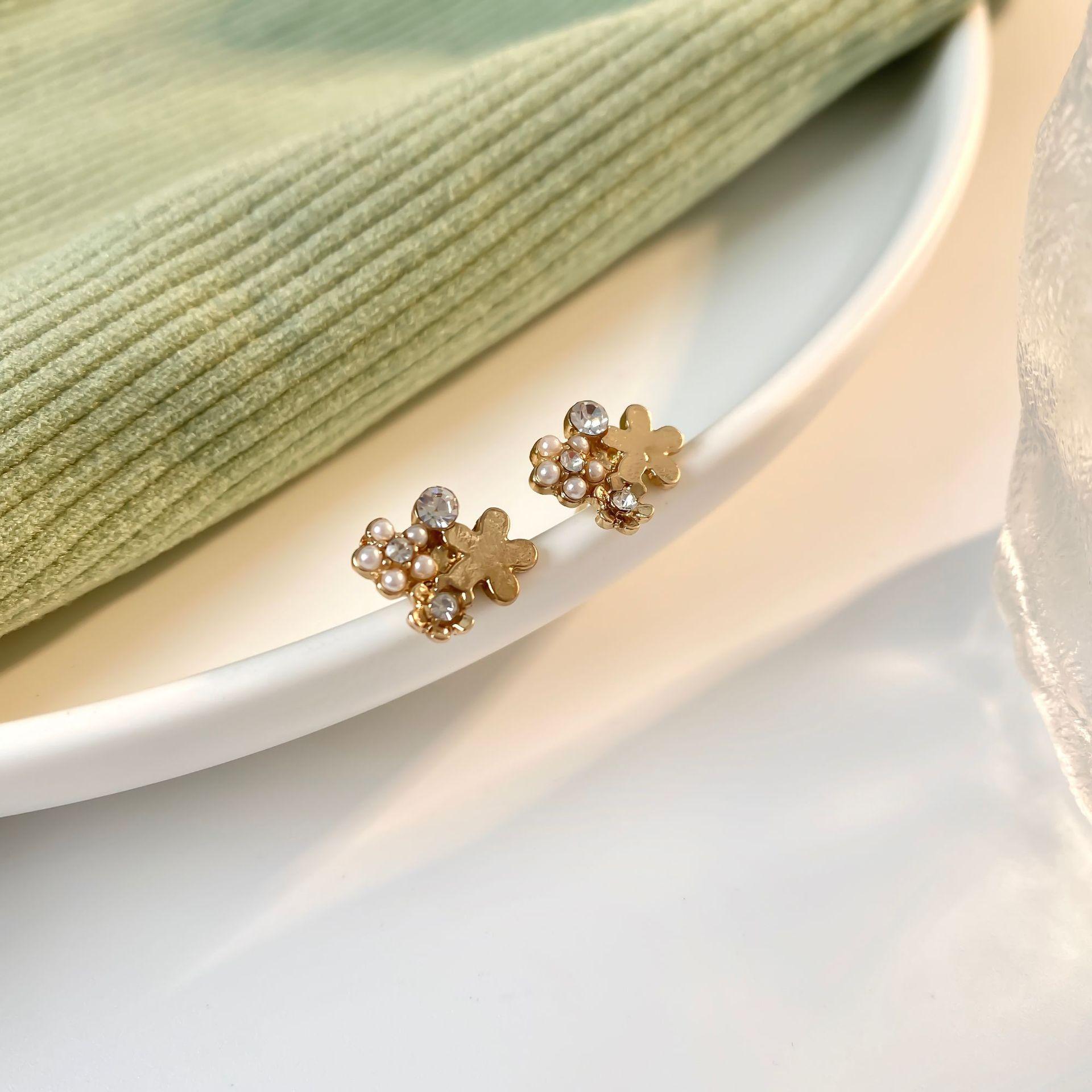 Compra Pendientes de tres piezas con diamantes de imitación de flores de estilo japonés y coreano, ligeros, de lujo, de alta calidad, que combinan con todo, pequeños y exquisitos. al por mayor en Joom.pro