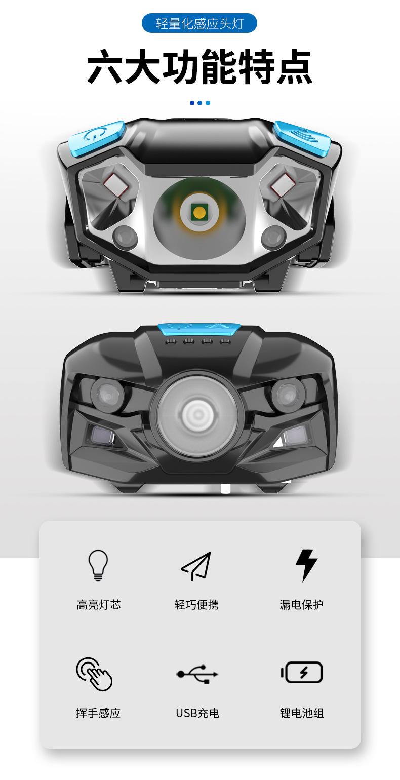 Nuevo faro con sensor de carga transfronterizo luz fuerte superbrillante lámpara para pesca nocturna faro impermeable para exteriores linterna frontal ligera