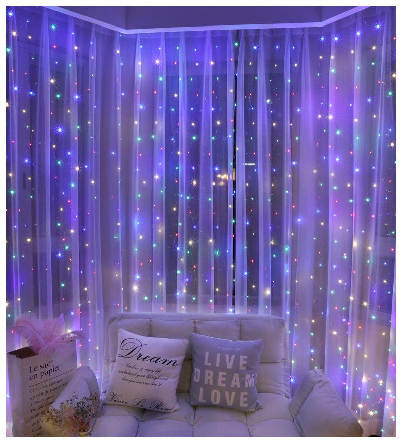 Cortina de Alambre de Cobre de Gipsófila Brillante Tira de Hielo Led Guirnalda de Luces Coloridas Decoración y Suministros para la Atmósfera de la Habitación Interior
