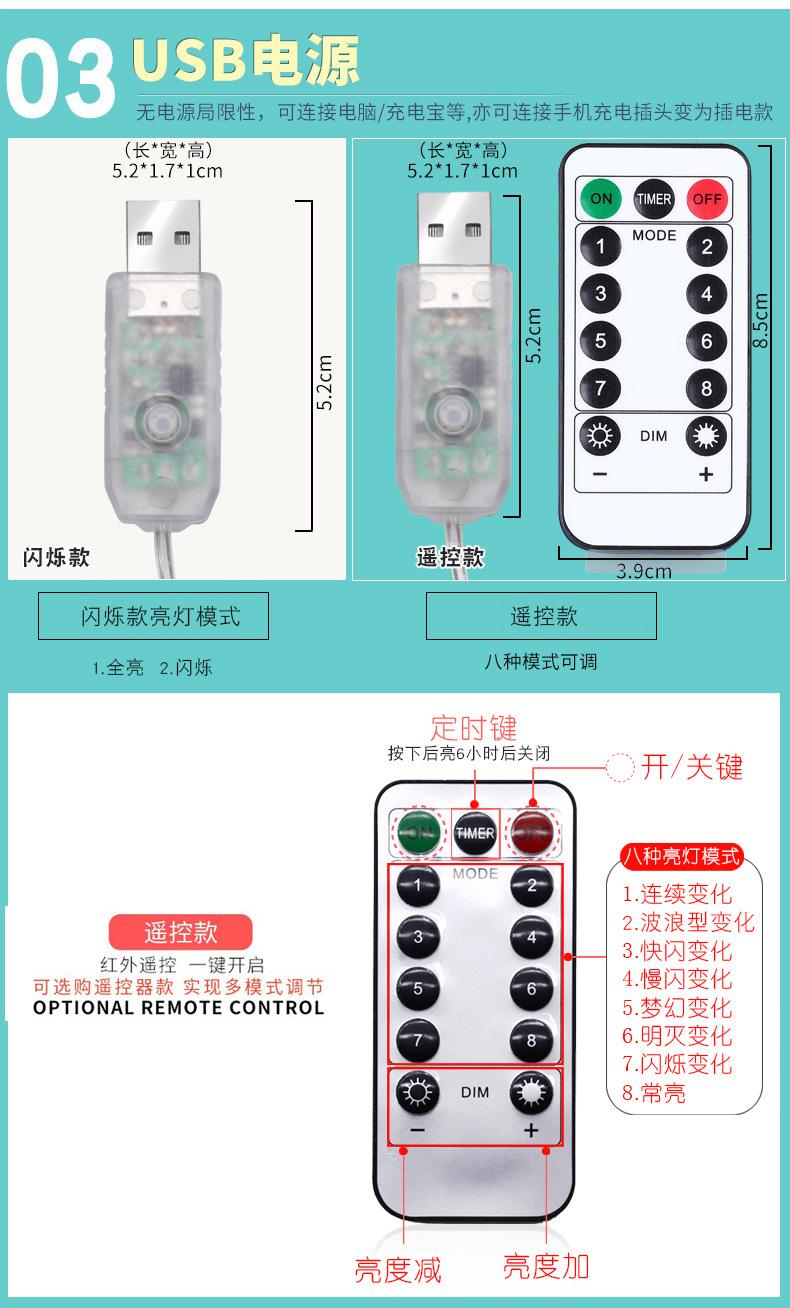 3*2 M warm white USB remote control, 3*2 creamy-white USB remote control, 3*2 M color USB remote control, 3*3 ...
