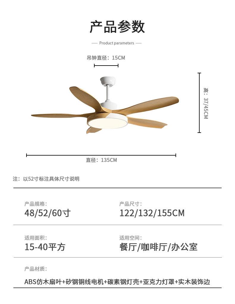 Ventilador de techo con conversión de frecuencia nórdica, luz grande con energía eólica, para el hogar, la sala de estar, el comedor, ventilador de techo, luz silenciosa, ventilador inteligente, fábrica de luces