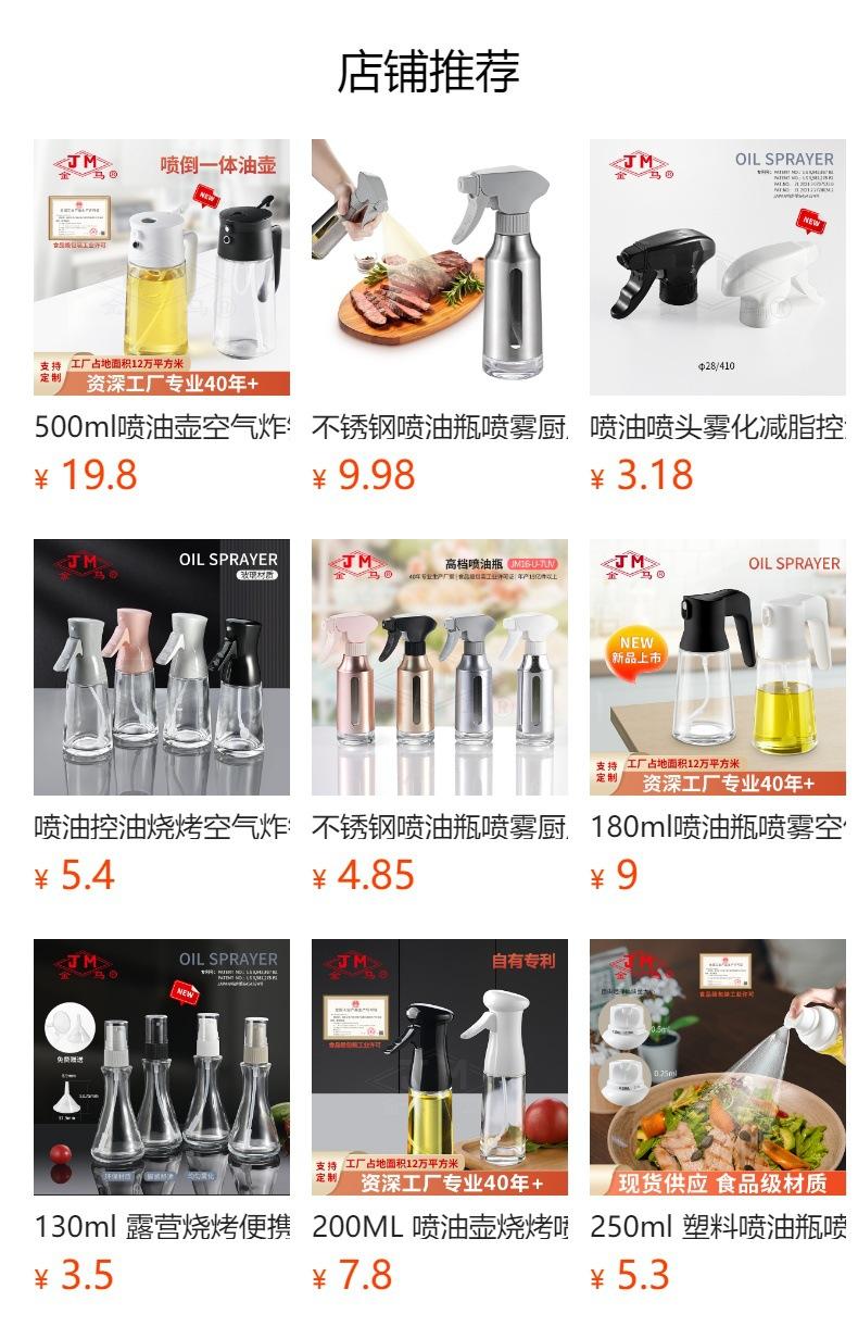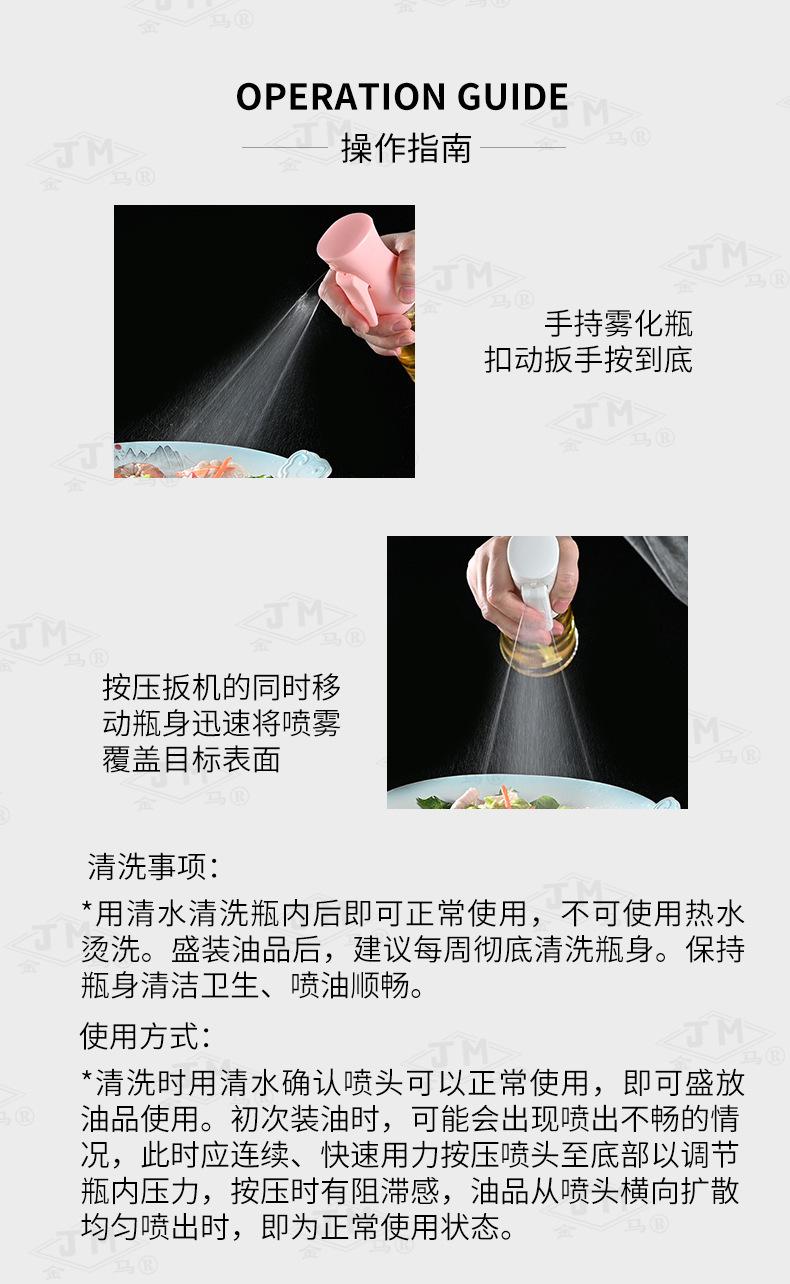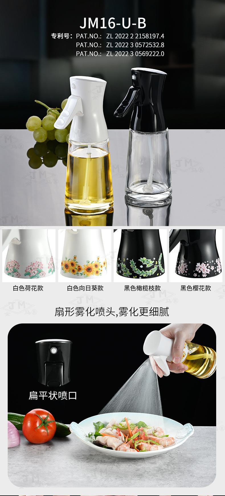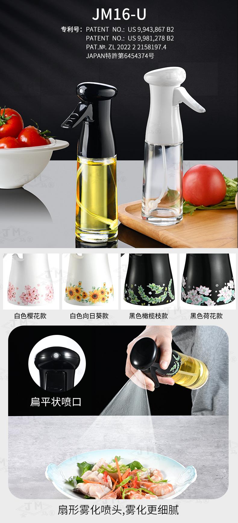 Botella de Vidrio con Atomizador Serie Jm16 Personalizada Reductora de Grasa y Control de Aceite Suministros de Cocina Botella Atomizadora de Aceite de Oliva