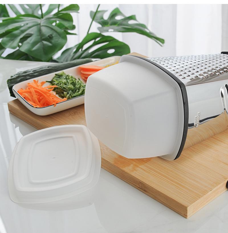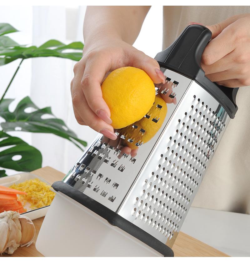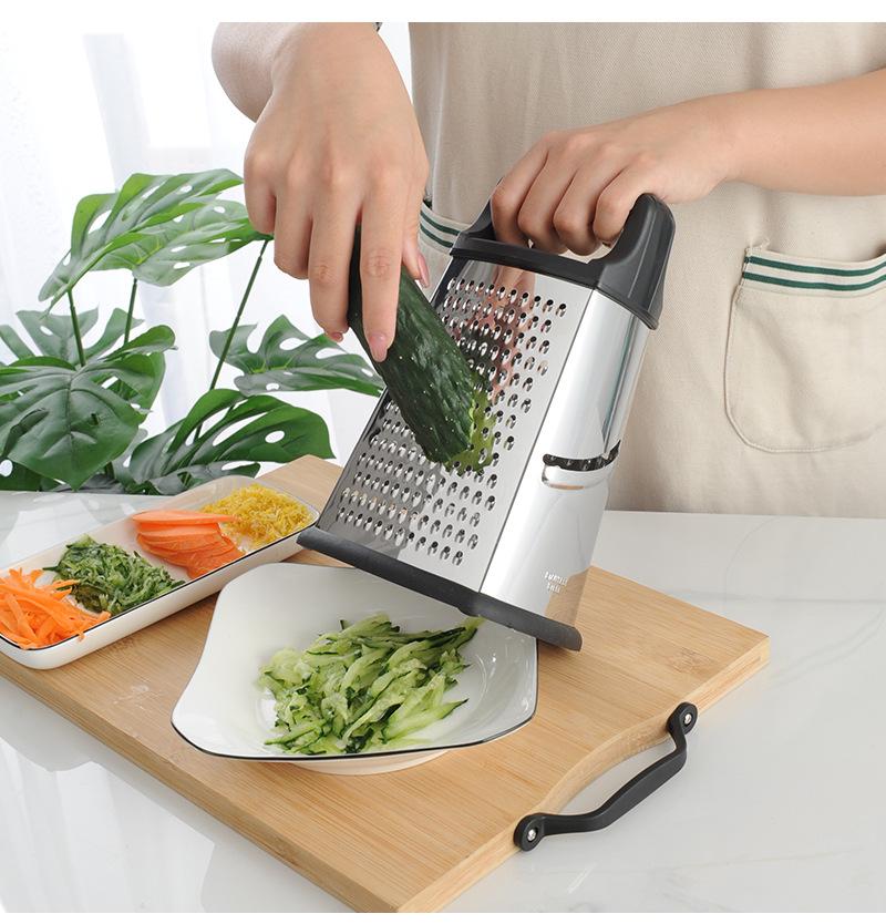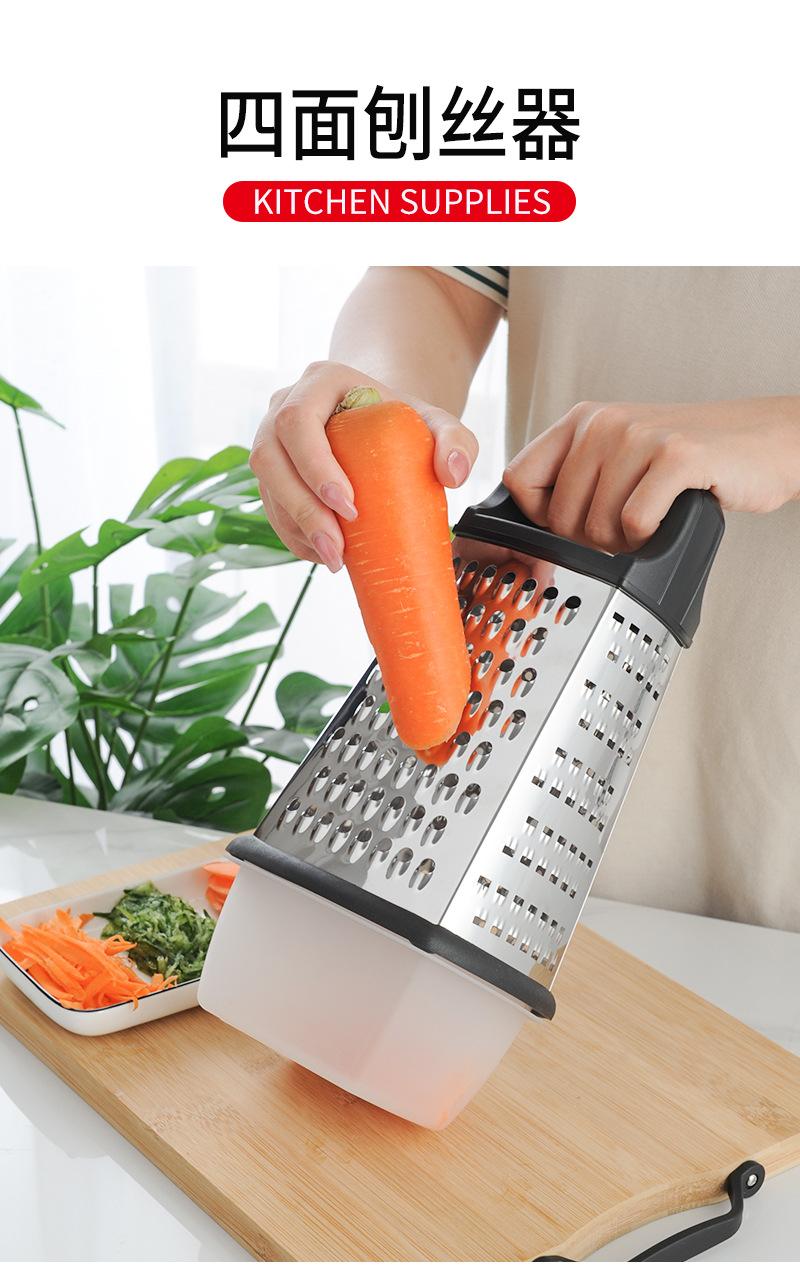 En stock, cortador de melones de cuatro lados de acero inoxidable, cortador de verduras multiusos de cocina, rallador de queso y patatas.