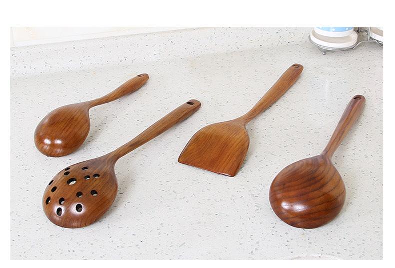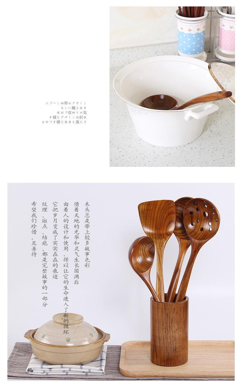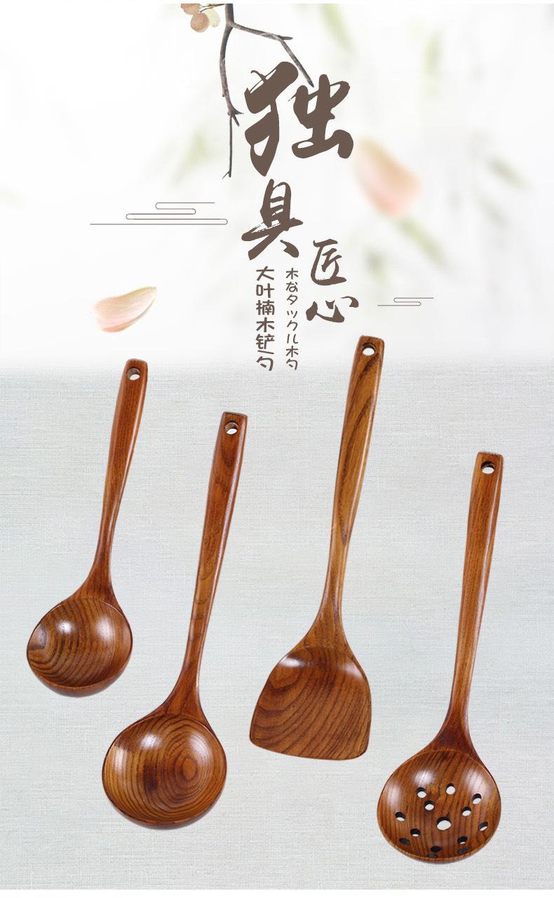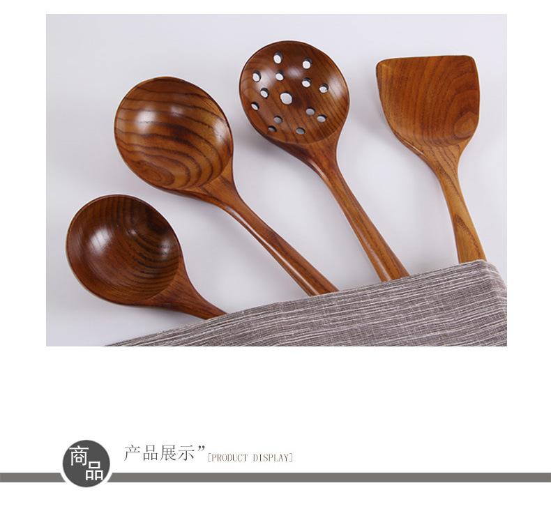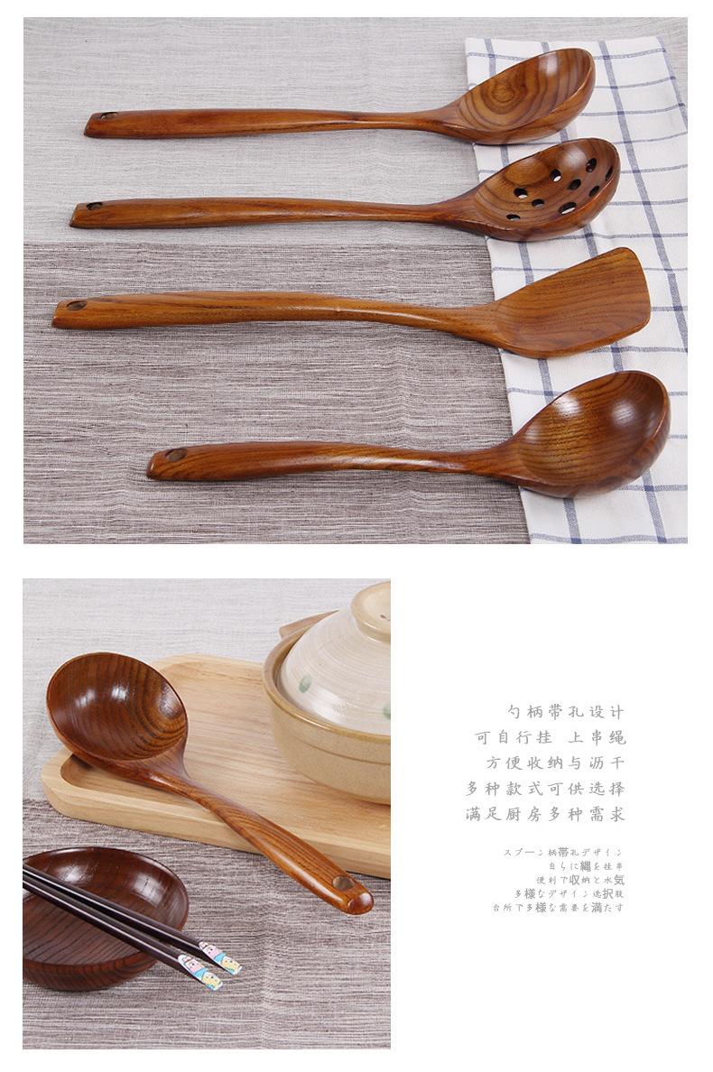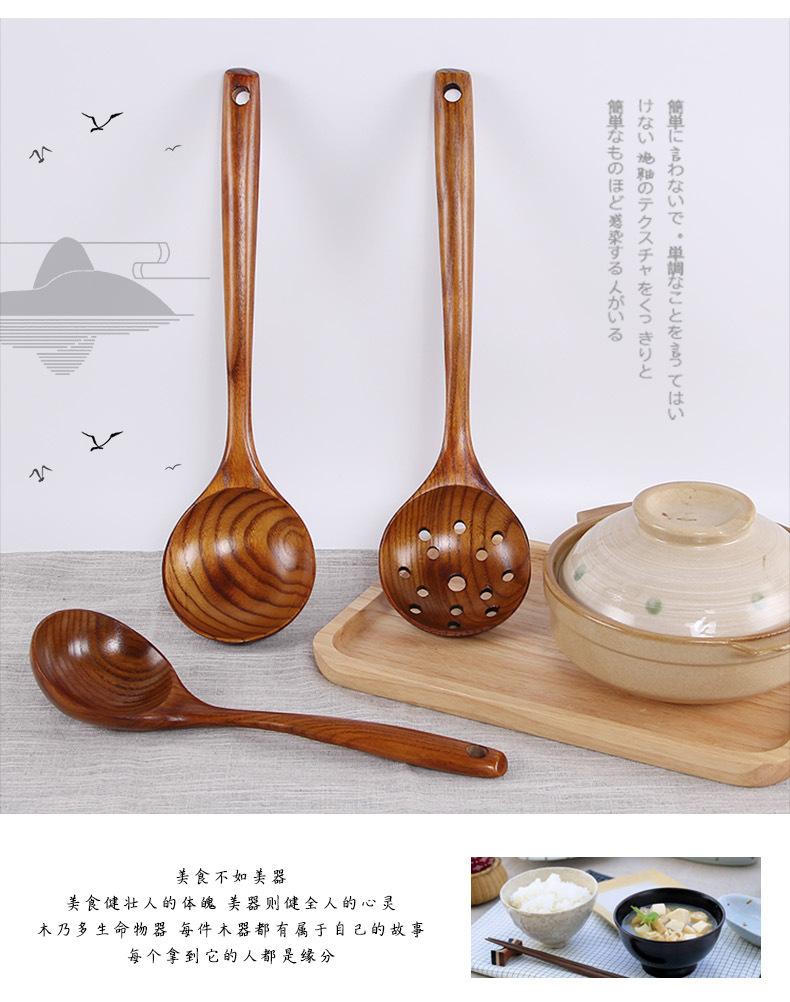 Cuchara de Sopa Grande de Madera Engrosada con Mango Largo Estilo Japonés para Hogar Cuchara de Madera para Porridge Juego de Espátulas Cuchara para Cocinar Cocina Hotel