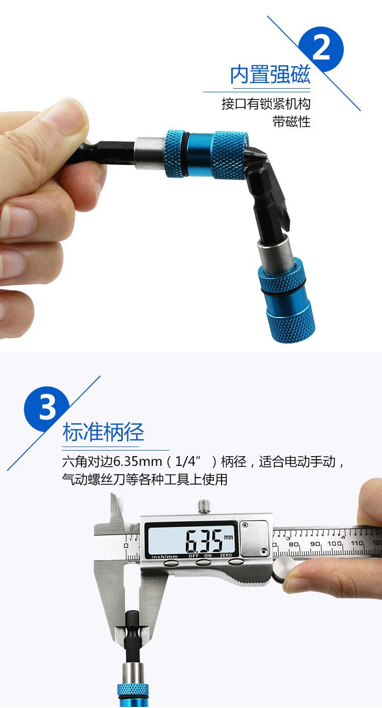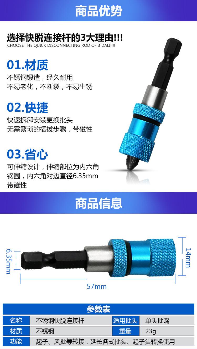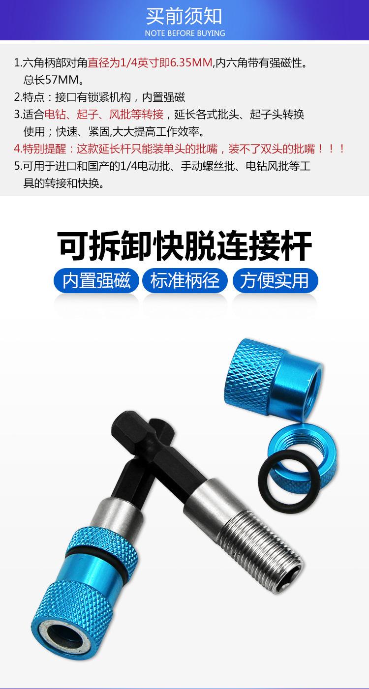 Biela de conexión rápida azul Diámetro del mango 6.35mm 60mm de largo con biela hexagonal magnética desmontable
