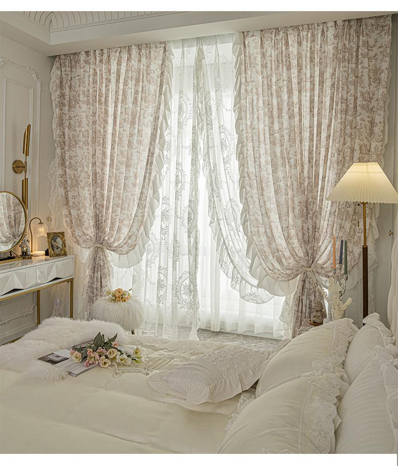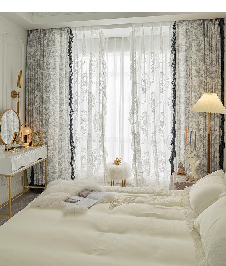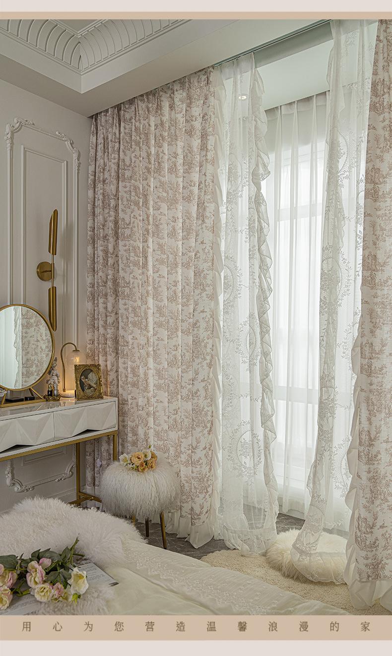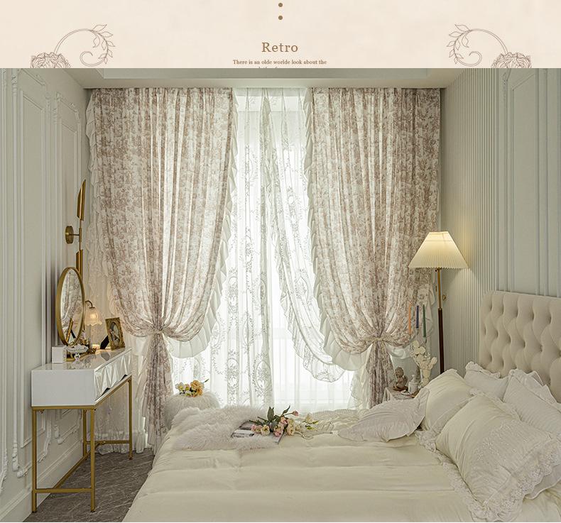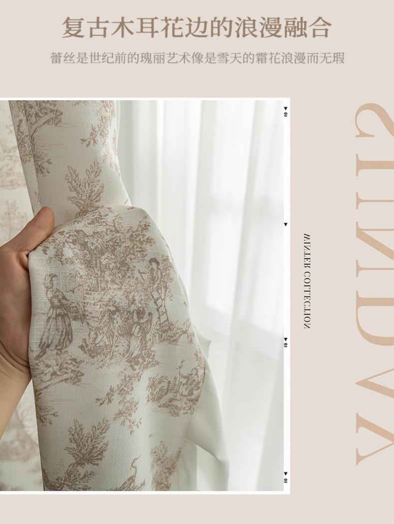 Cortina de gasa con estampado retro francés, cortina de encaje personalizada, para sala de estar, balcón, transparente