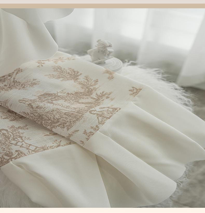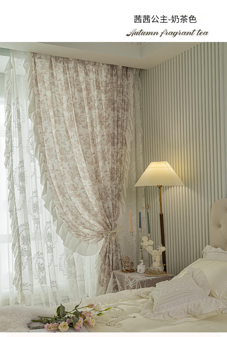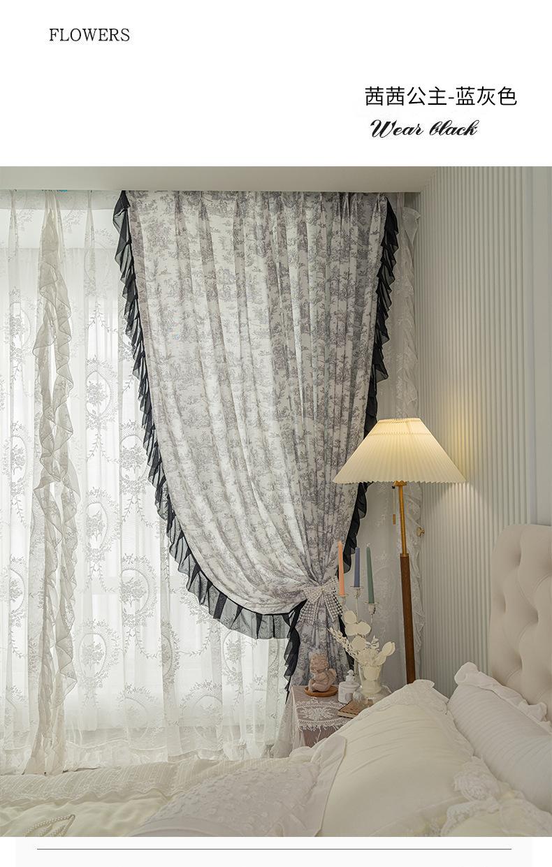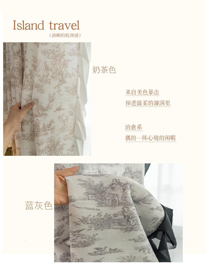 Cortina de gasa con estampado retro francés, cortina de encaje personalizada, para sala de estar, balcón, transparente