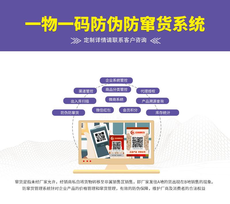 El sistema de gestión anti-falsificación tiene como objetivo la gestión de precios y la gestión de falsificaciones de productos empresariales, previniendo eficazmente la falsificación y salvaguardando los derechos e intereses legítimos de fabricantes y consumidores.