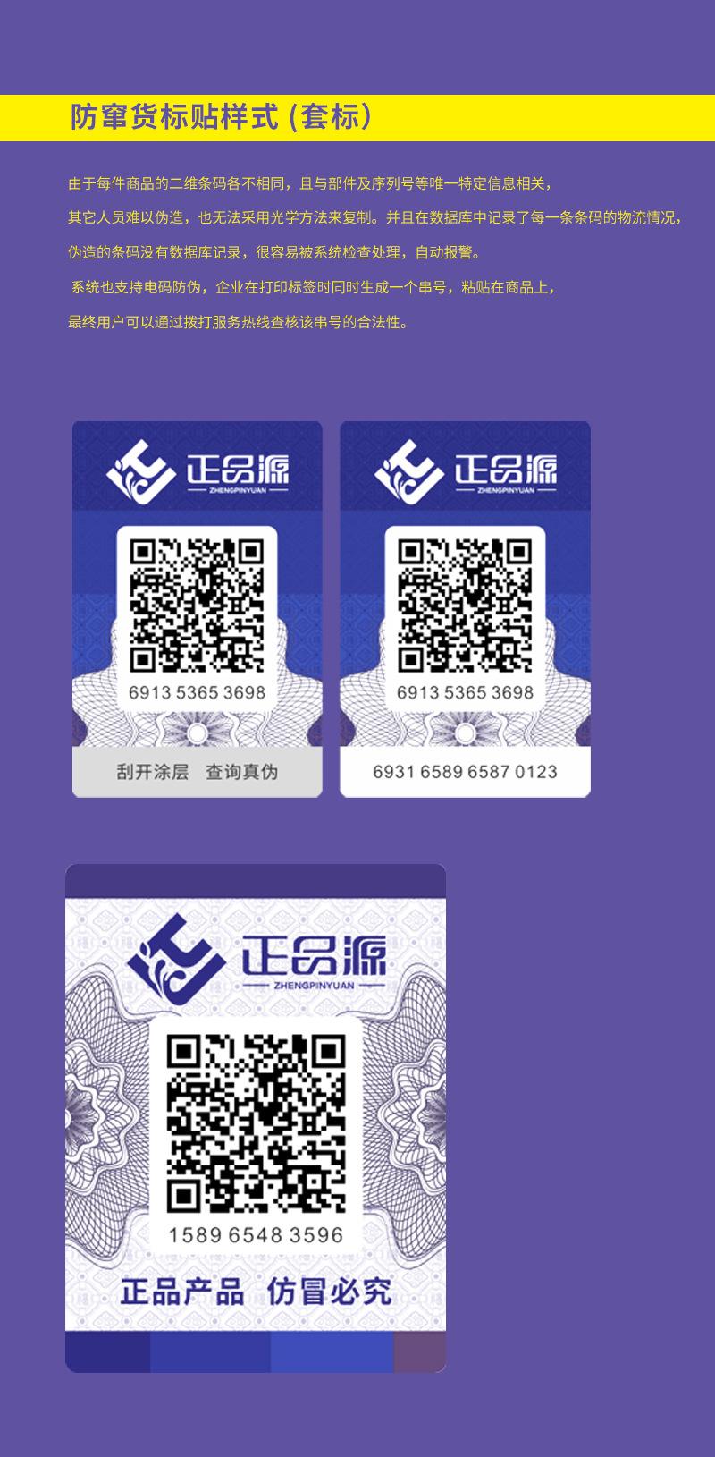 Dado que el código de barras bidimensional de cada producto es diferente y está relacionado con información específica, como piezas y números de serie, es difícil que otras personas lo falsifiquen y es imposible copiarlo mediante métodos ópticos. Además, la información logística de cada código de barras se registra en la base de datos. Los códigos de barras falsificados no tienen registros en la base de datos y el sistema los verifica y procesa fácilmente, emitiendo una alarma automática. El sistema también es compatible con la prevención de falsificaciones mediante código electrónico. Al imprimir etiquetas, las empresas generan simultáneamente un número de serie y lo pegan en los productos. El usuario final puede comprobar la legitimidad del número de serie llamando a la línea directa de servicio.