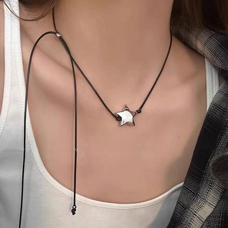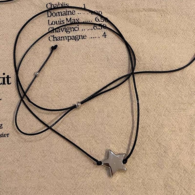 Collar de estrella de cuerda negra popular, cadena de clavícula para mujer, de alta calidad, sencillo, de nicho, estilo dulce y genial, accesorios retro a juego.