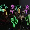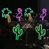 Amazon Solar Jardín Paisaje Cactus Luz de Neón Led Césped Luz de Estaca para Suelo Decoración Panel Solar