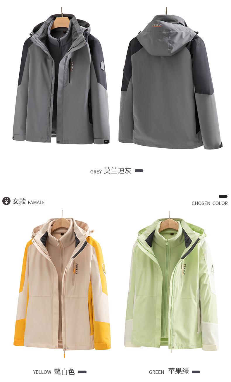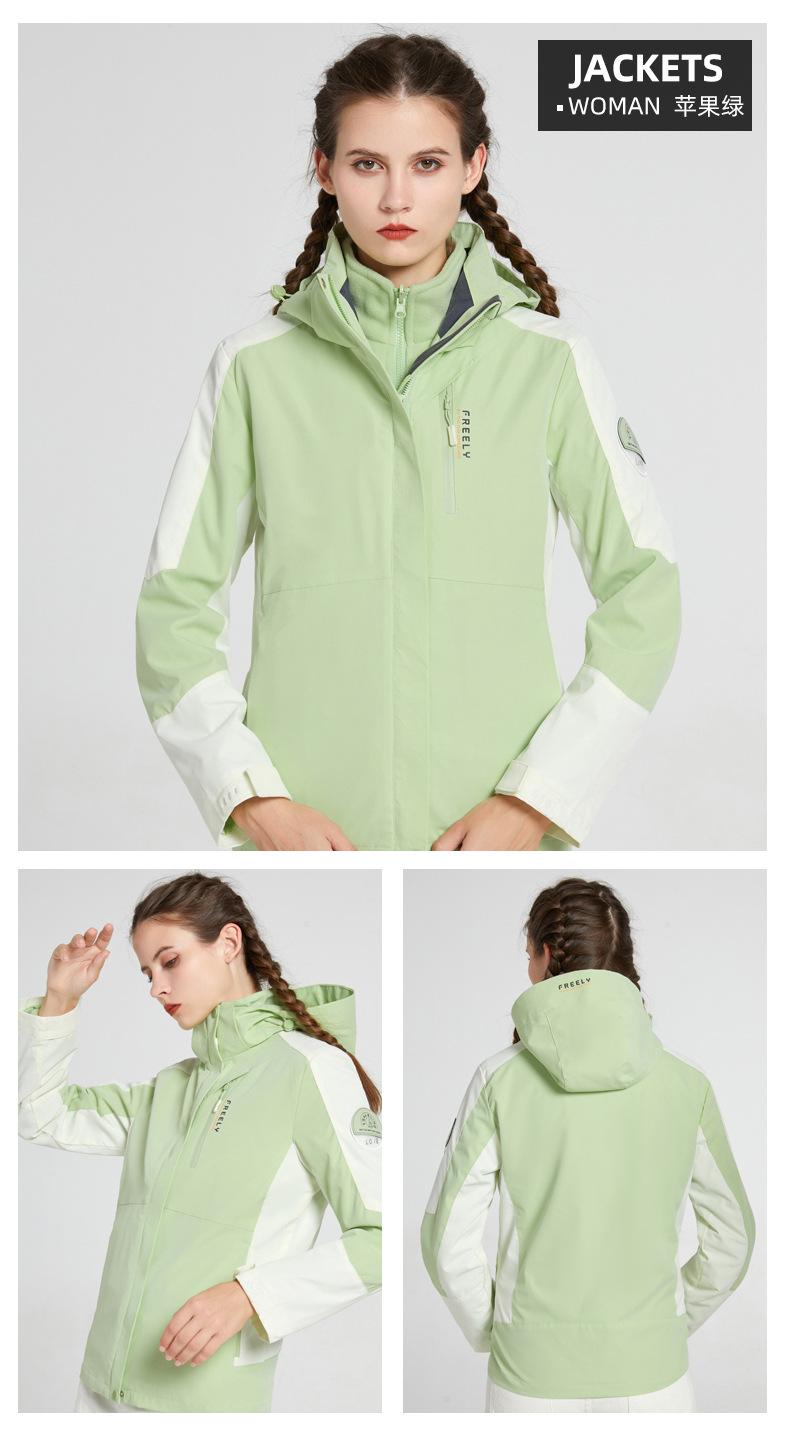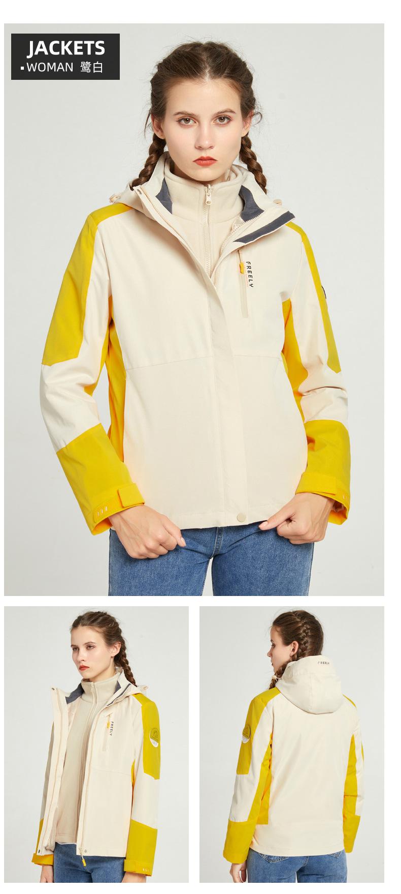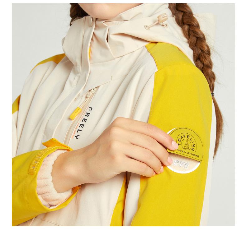 Chaqueta para Hombre y Mujer, Conjunto de Dos Piezas Desmontable Tres en Uno con Forro de Terciopelo Visón Dorado, Traje de Esquí Cortavientos de Montañismo a la Moda