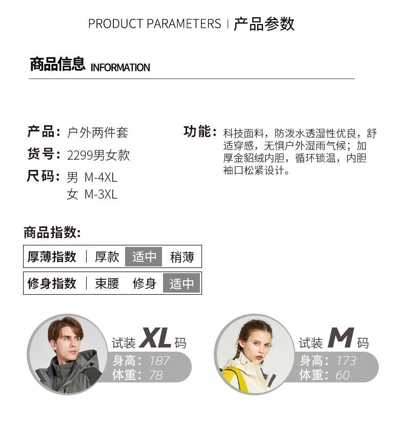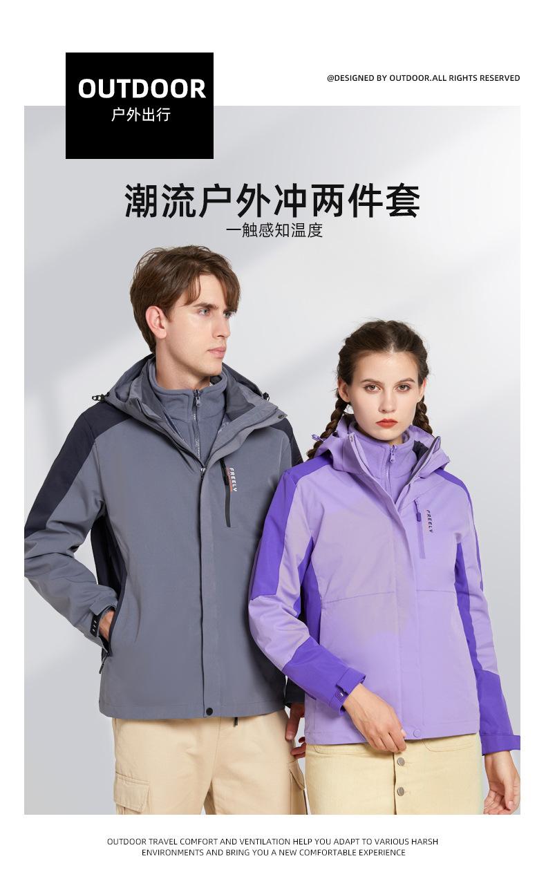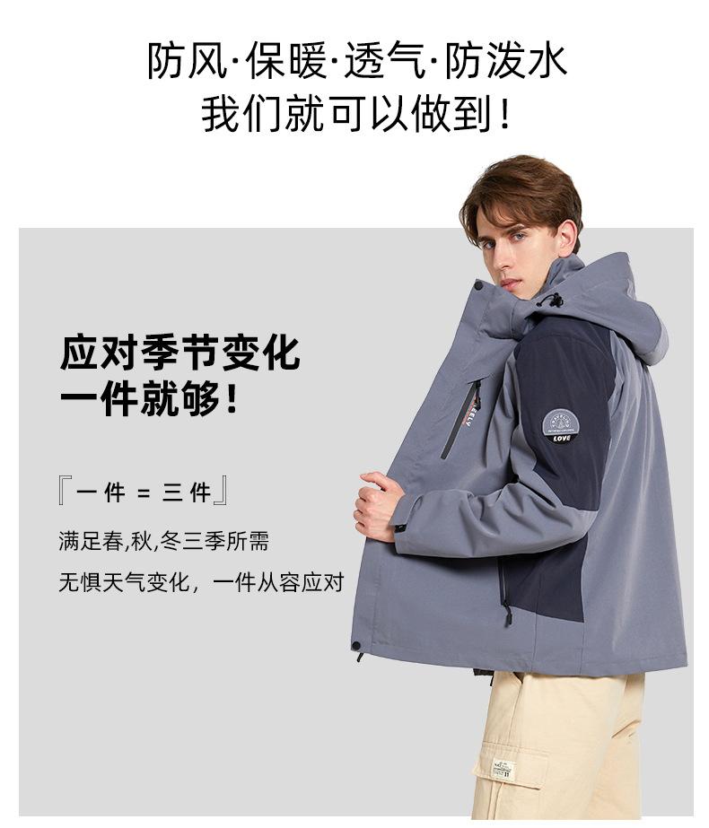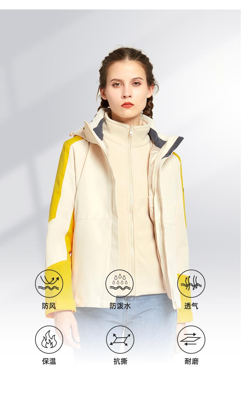 Chaqueta para Hombre y Mujer, Conjunto de Dos Piezas Desmontable Tres en Uno con Forro de Terciopelo Visón Dorado, Traje de Esquí Cortavientos de Montañismo a la Moda