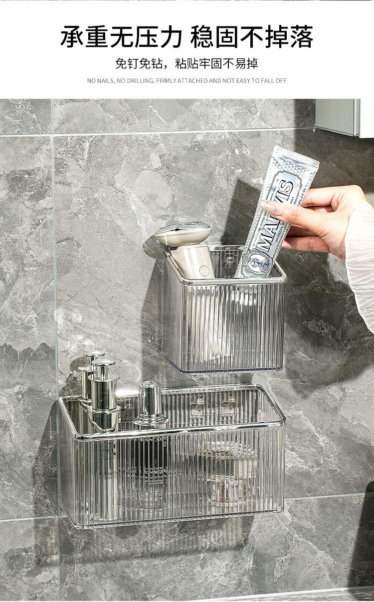 Estante de baño, Caja de almacenamiento para inodoro sin taladro, Contenedor de almacenamiento para cosméticos y artículos pequeños para lavabo montado en la pared
