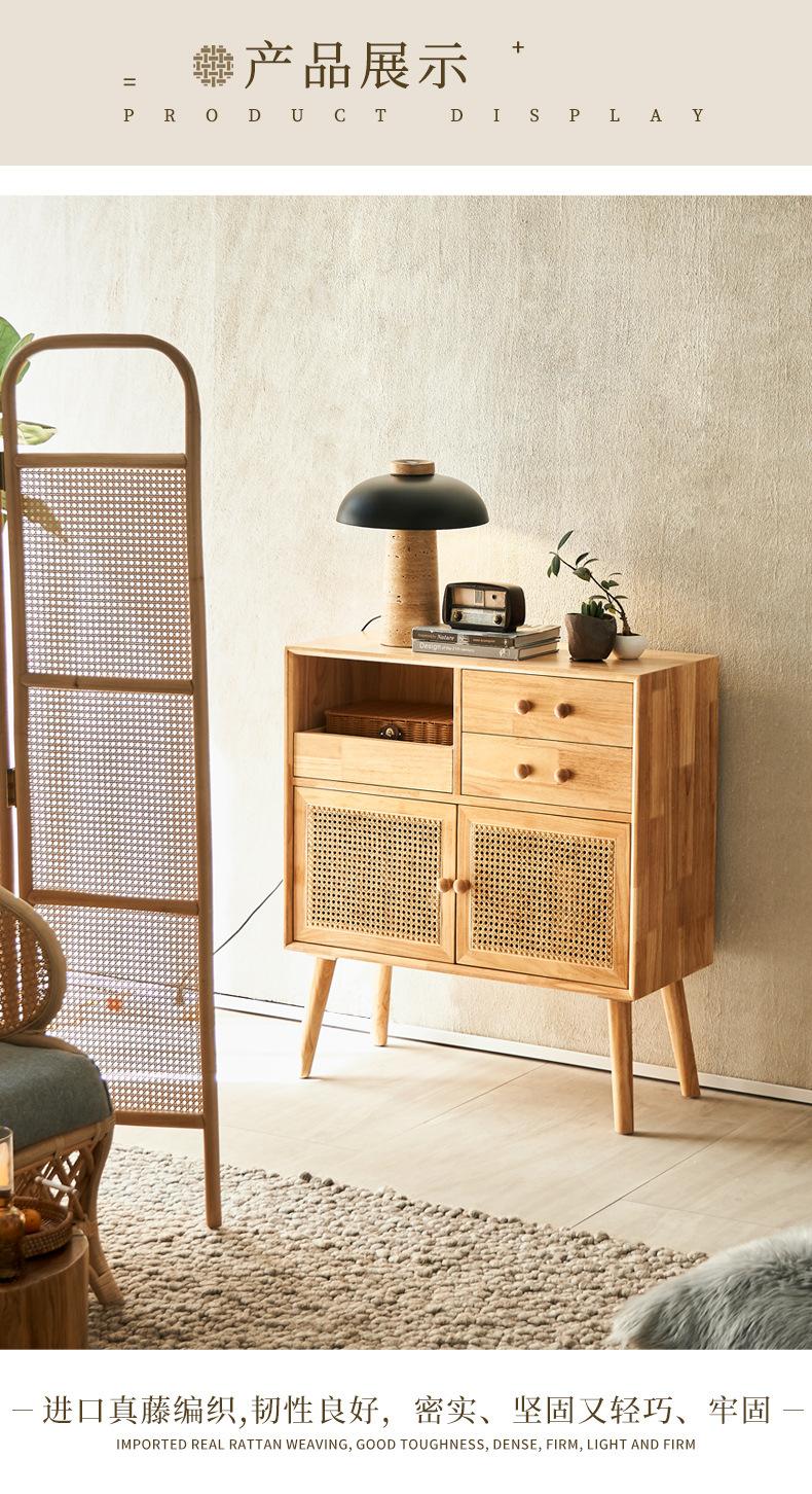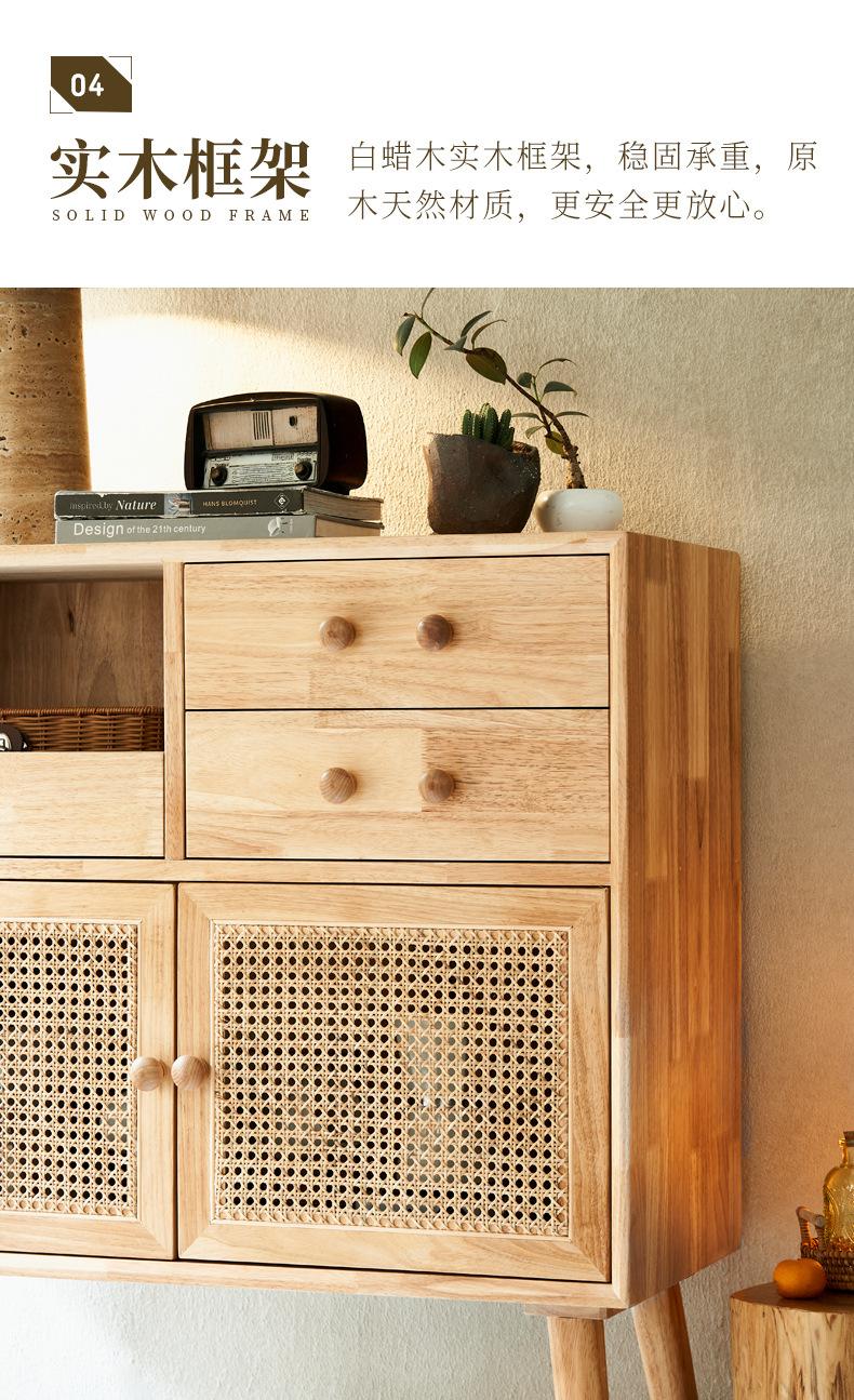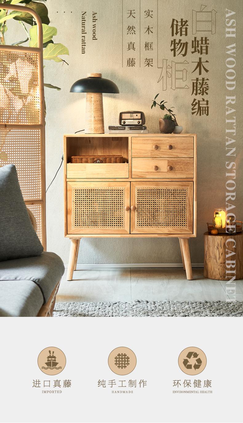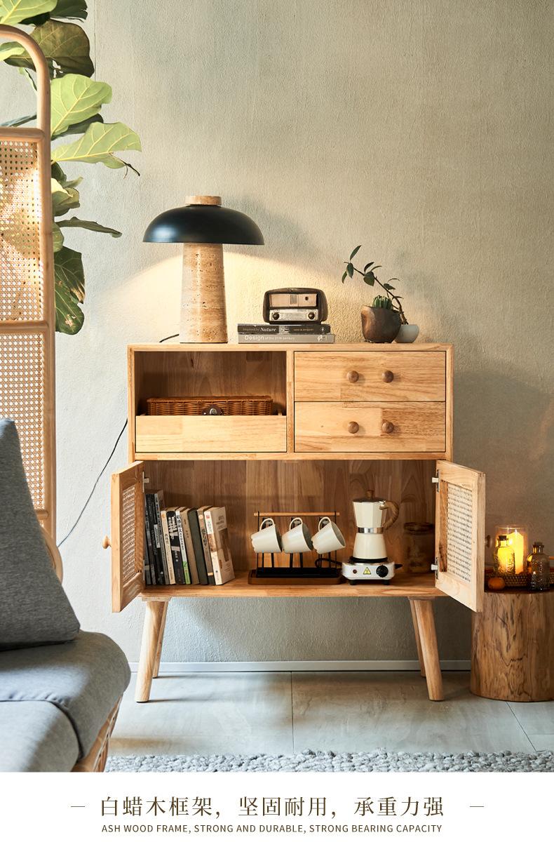 Aparador moderno y sencillo de madera maciza de ratán para sala de estar, estilo japonés, de madera de fresno con cajón.