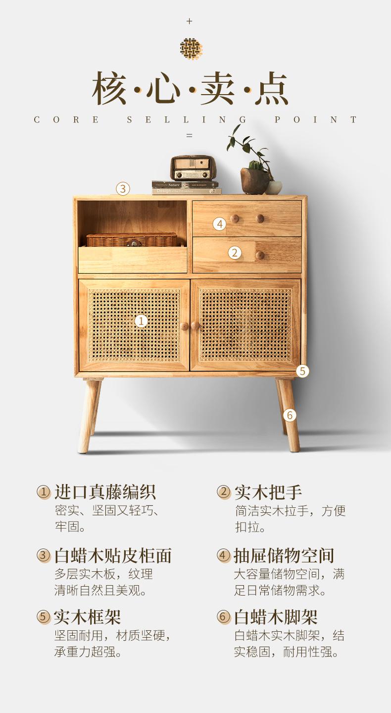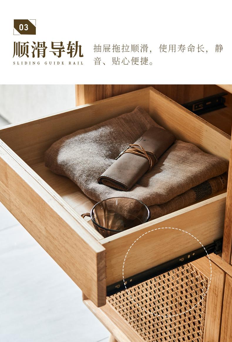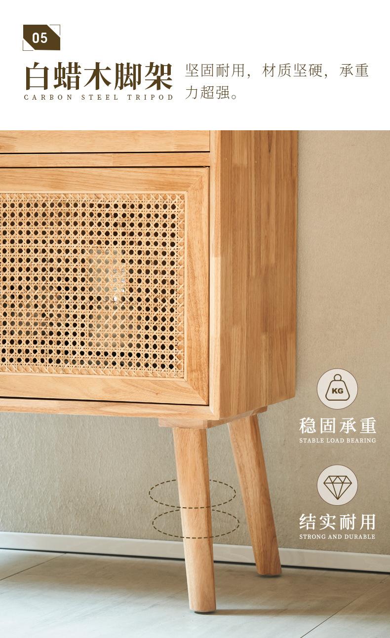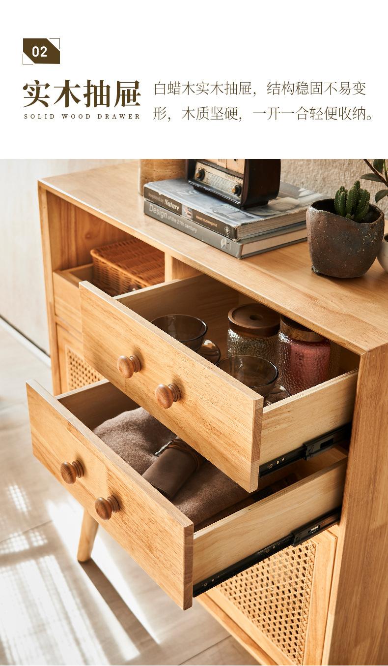 Aparador moderno y sencillo de madera maciza de ratán para sala de estar, estilo japonés, de madera de fresno con cajón.