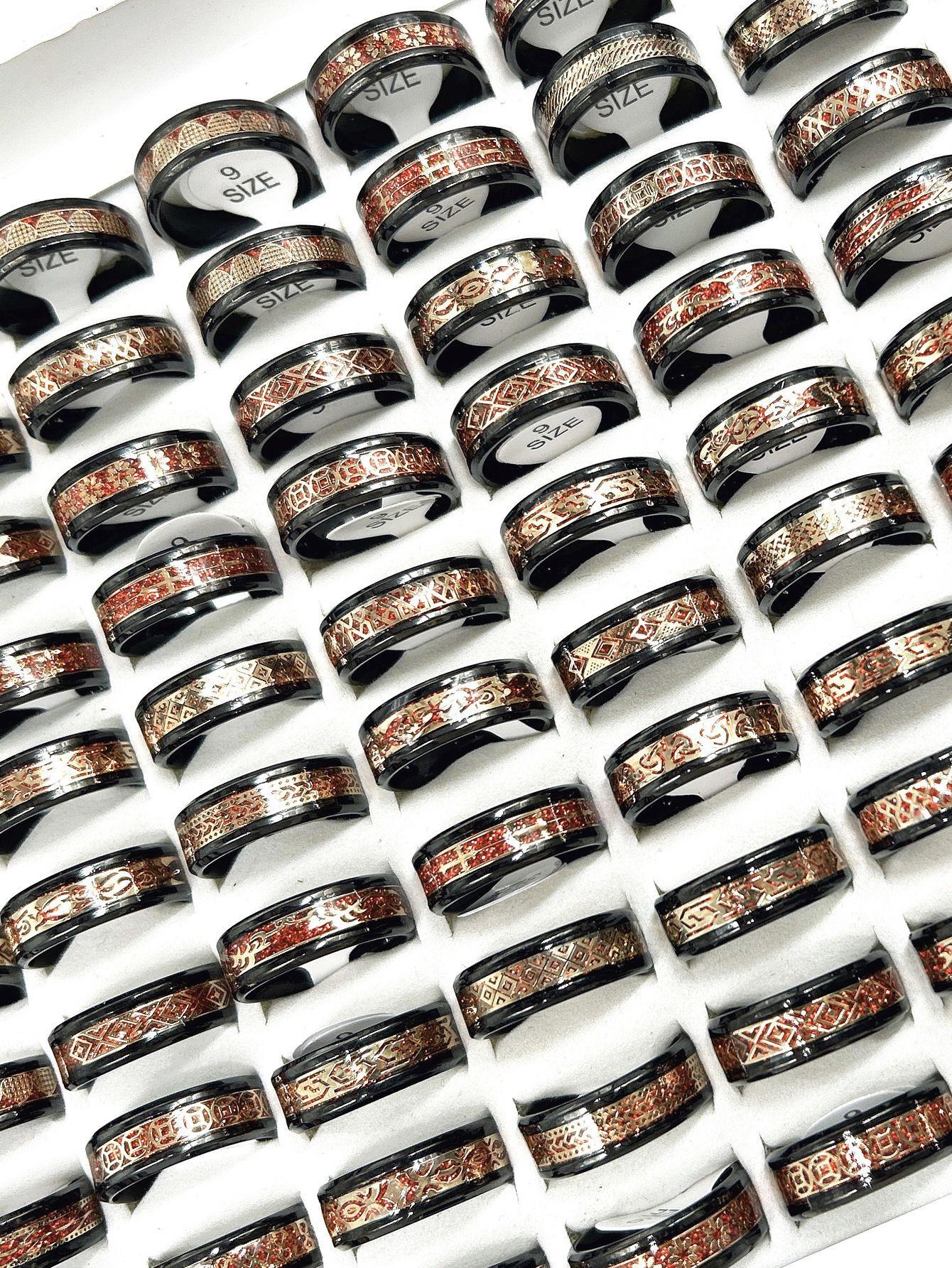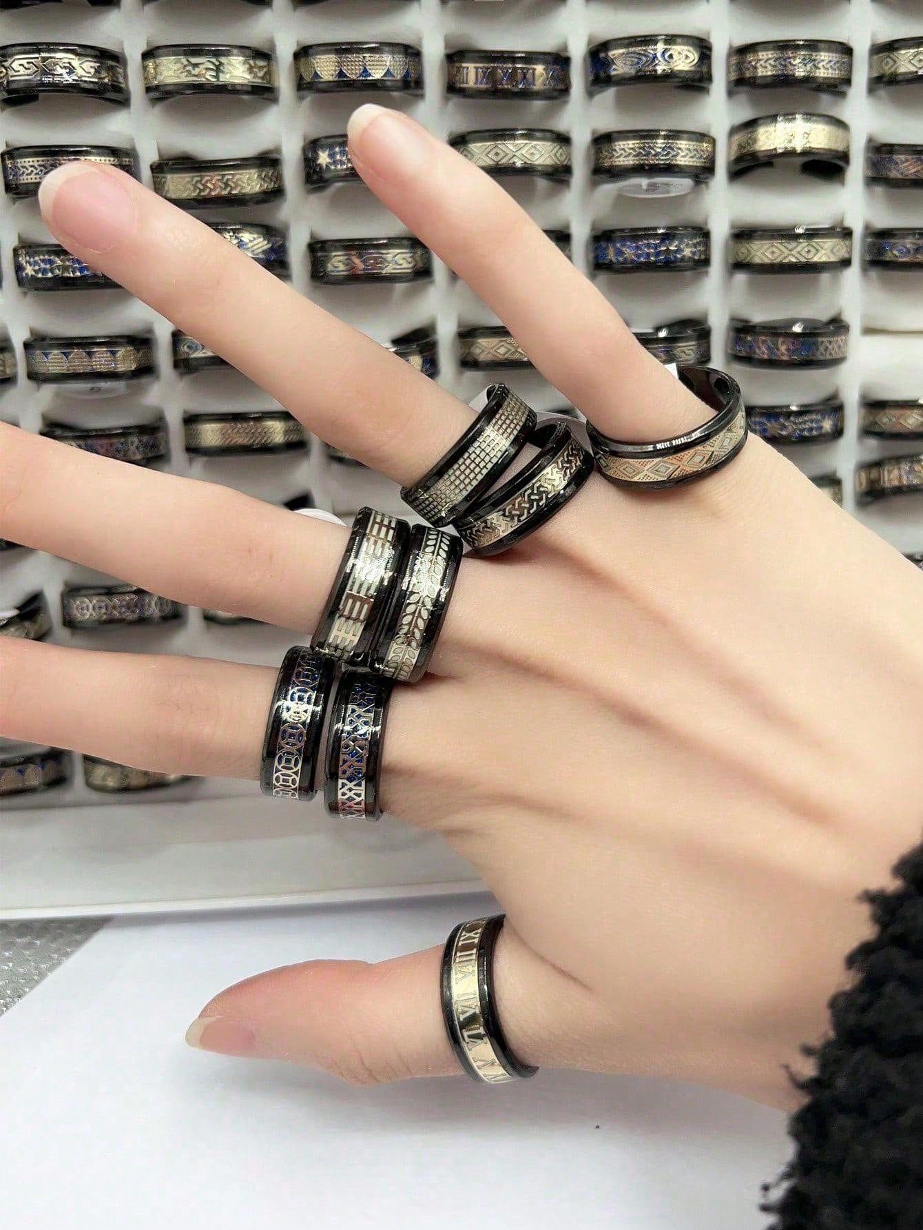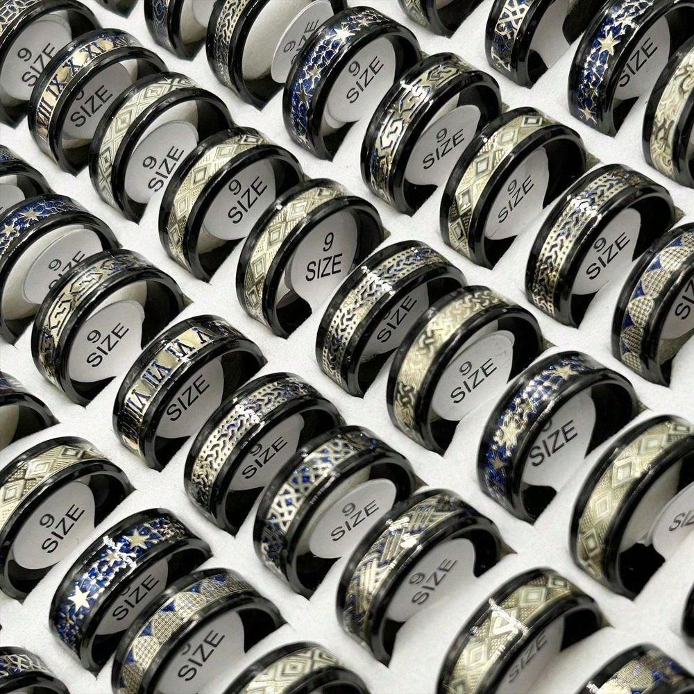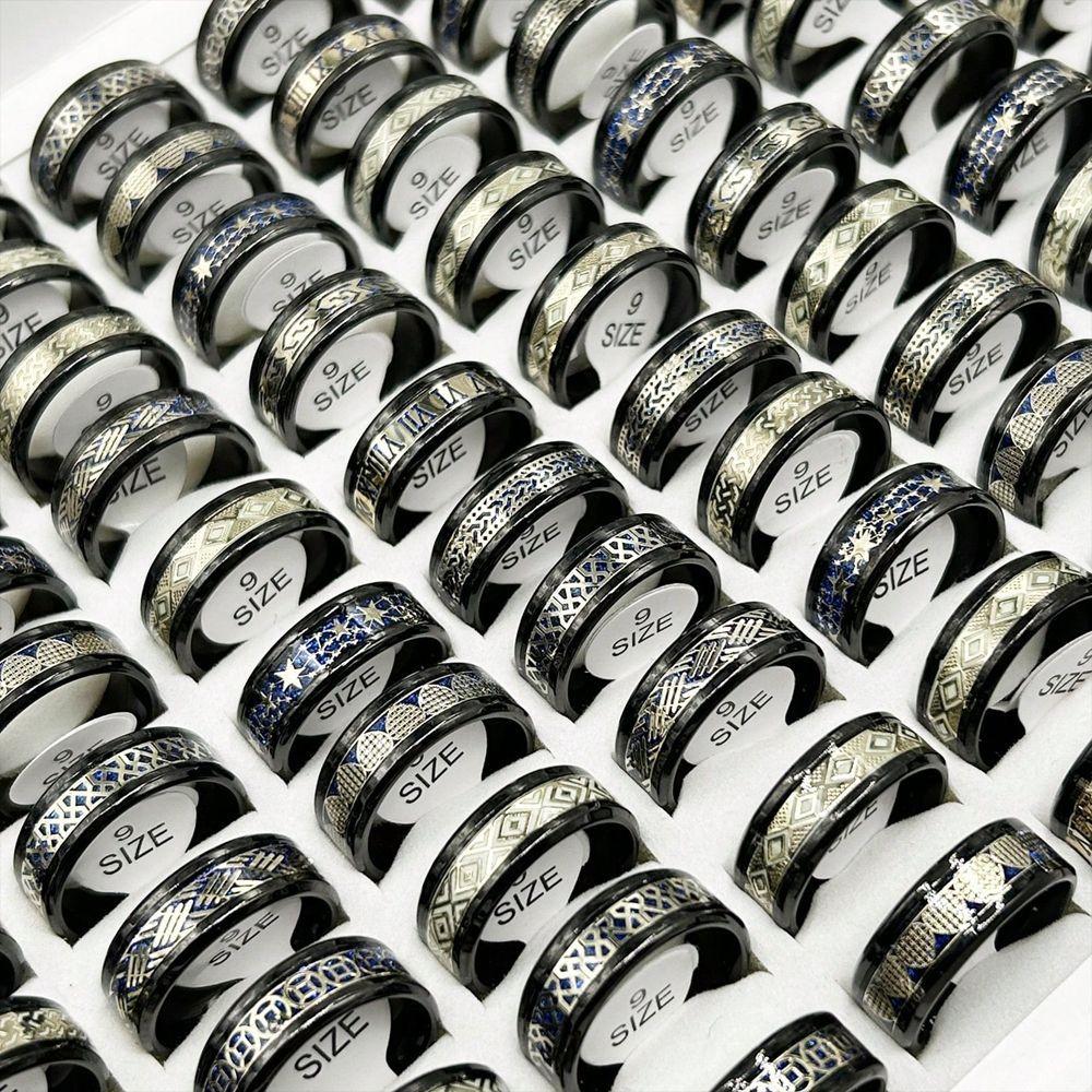 Anillo luminoso de acero inoxidable al por mayor transfronterizo con patrón goteado, lote mixto, anillo de acero de titanio para hombre, fabricante fuente de joyería de Yiwu