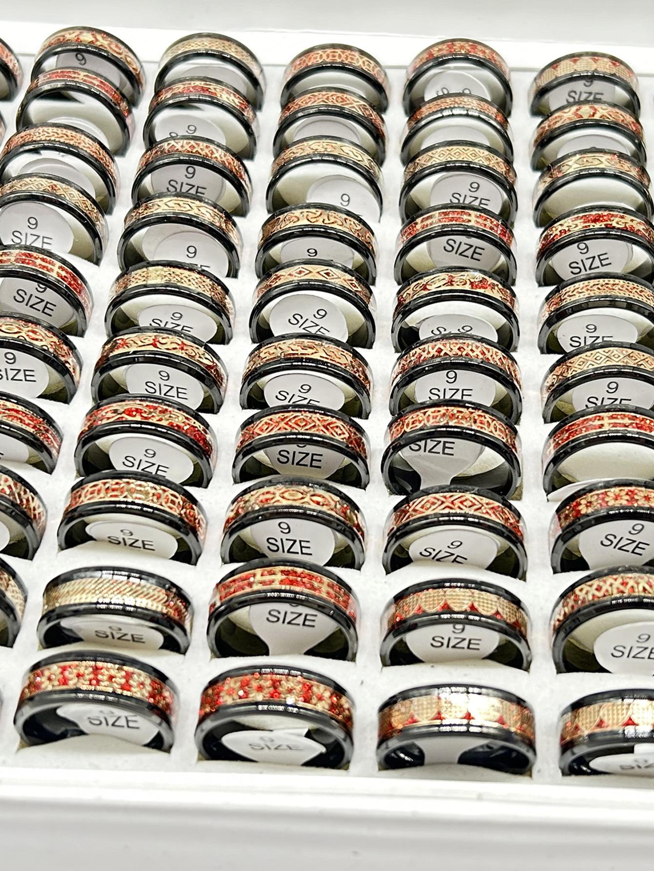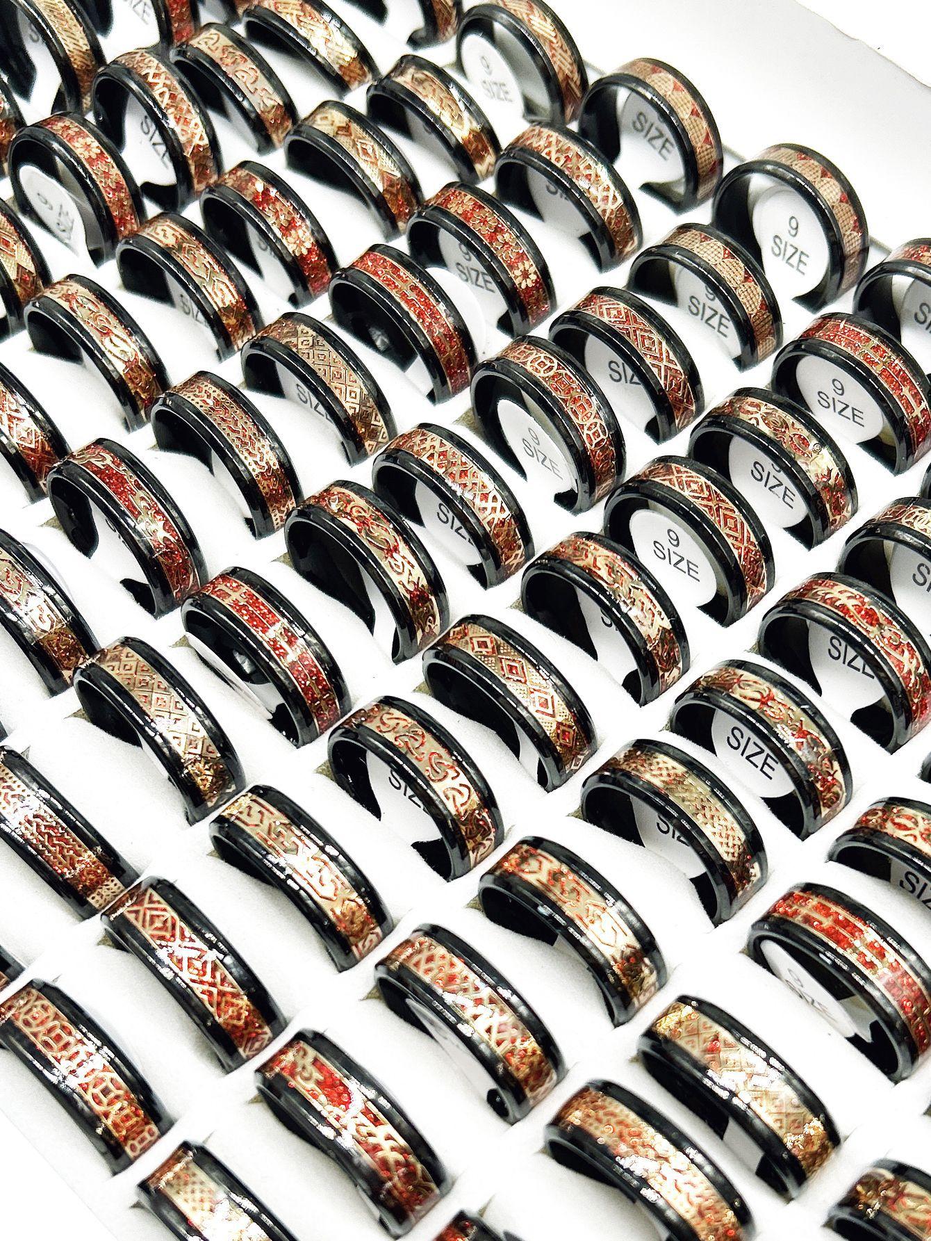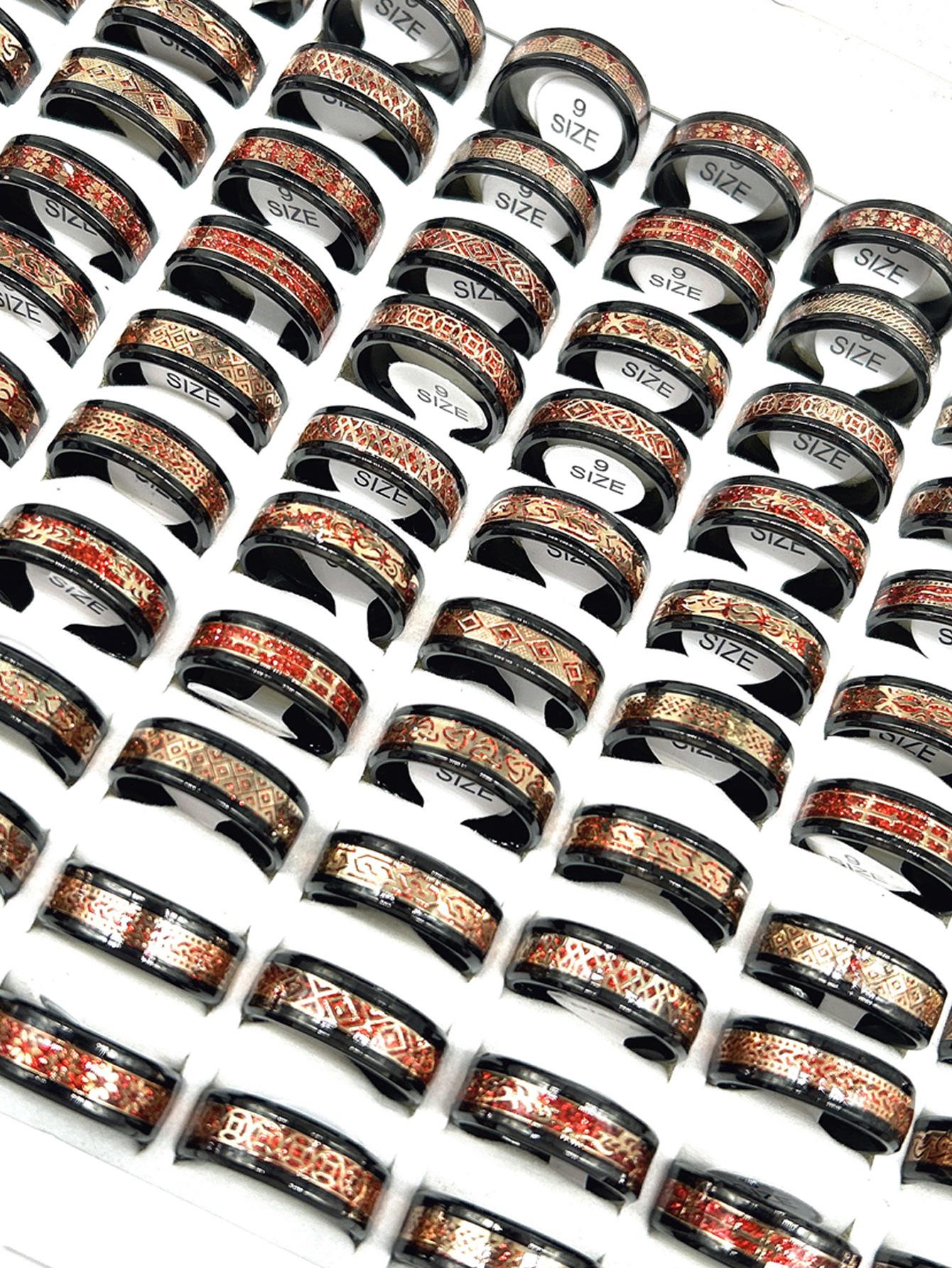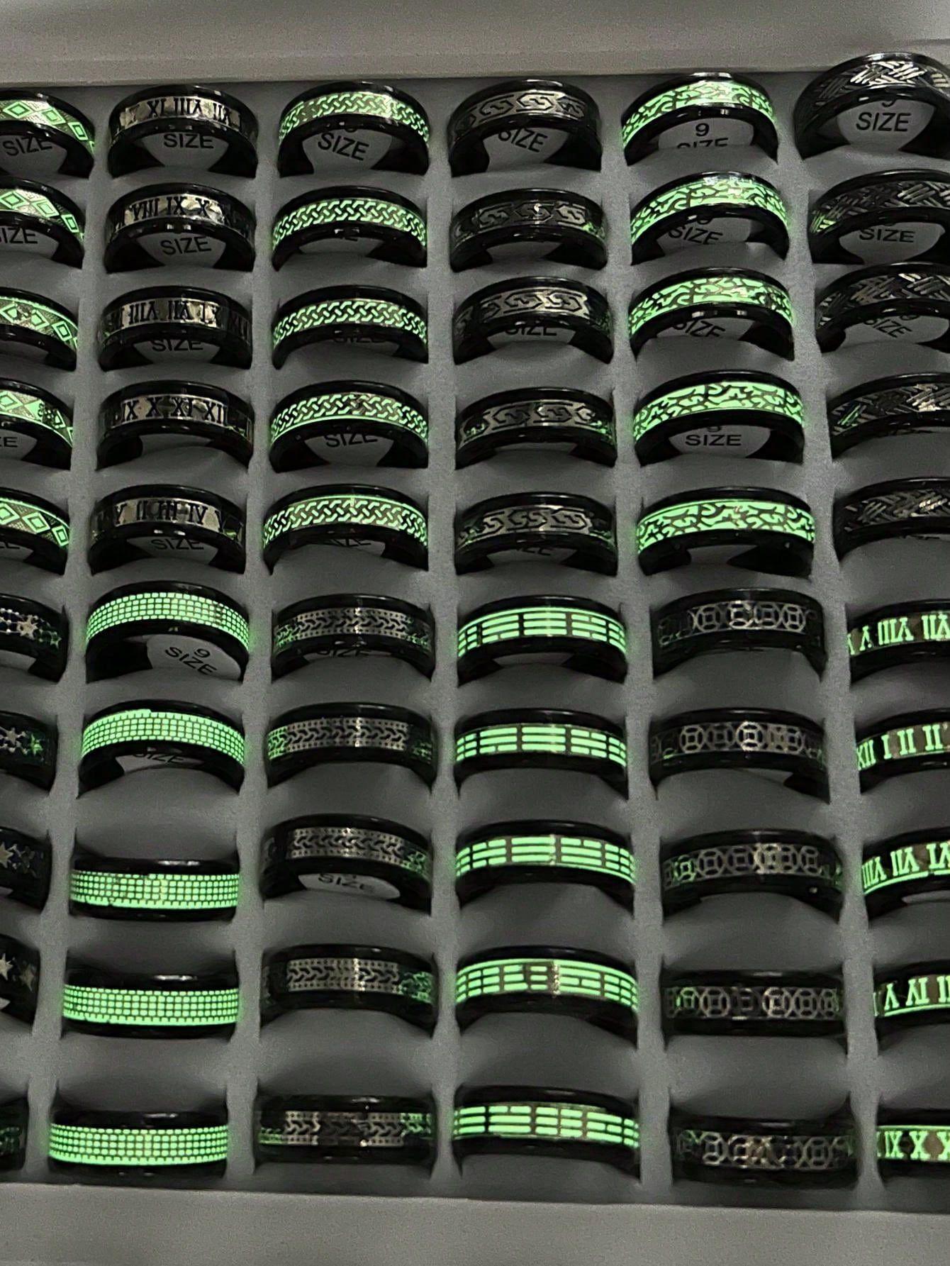 Anillo luminoso de acero inoxidable al por mayor transfronterizo con patrón goteado, lote mixto, anillo de acero de titanio para hombre, fabricante fuente de joyería de Yiwu