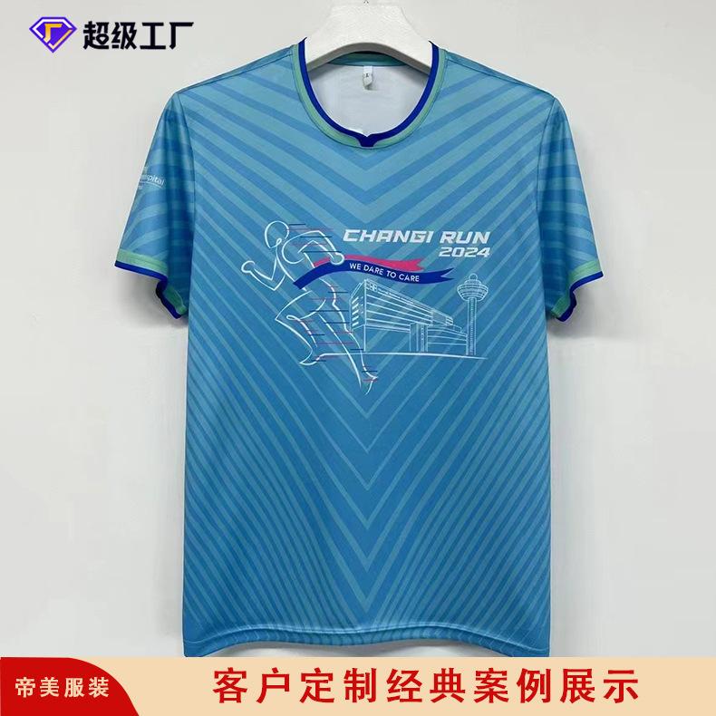Camiseta de cuello redondo de secado rápido, manga corta, con estampado digital personalizado y logotipo, ideal para maratones, deportes y cultura.