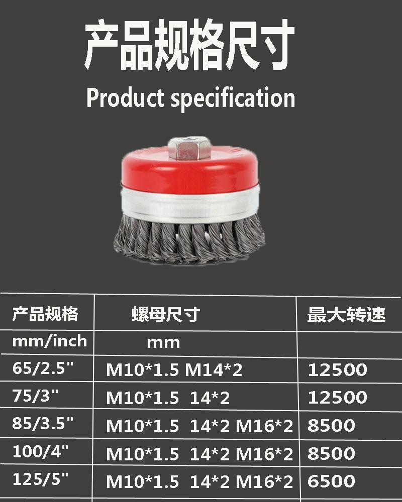 Este producto tiene muchas especificaciones debido al uso y al precio. En términos generales, es el número de alambres de acero y el tamaño del diámetro exterior del tazón. ¿Cuáles son las principales diferencias entre estos tipos? ¡Es muy simple! En términos generales, según la resistencia que necesite para el rectificado, si la resistencia es pequeña, puede usar una rueda de acero con un diámetro exterior más pequeño, alambre de acero más delgado y menos alambre de acero; si la resistencia es grande, ¡use una rueda de acero con un diámetro exterior grande, alambre de acero grueso y más alambre de acero! ¡El primero también será más barato!