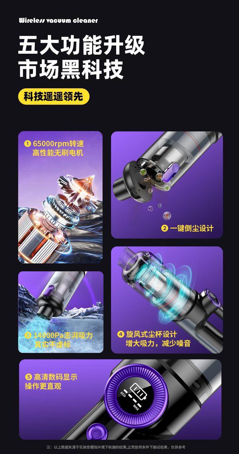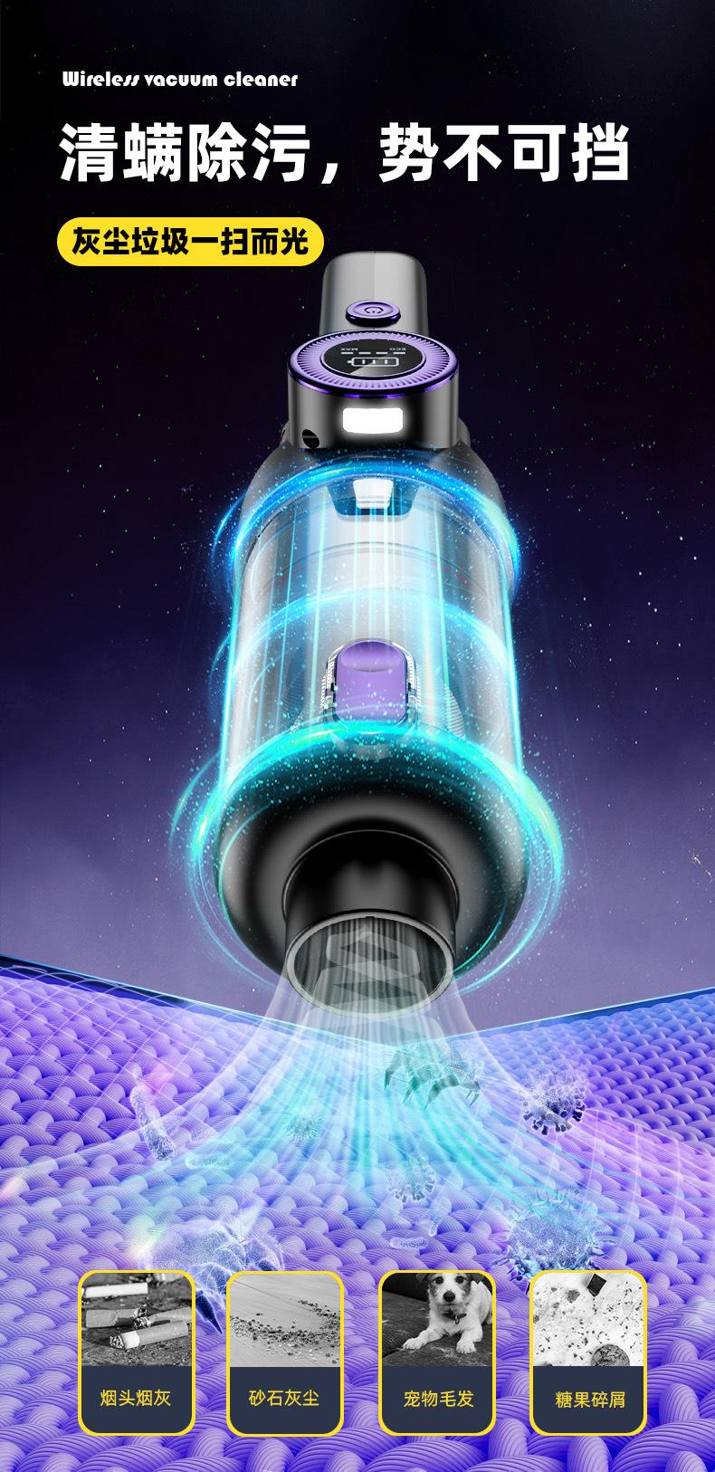 Digital display screen, one-click dust dumping, cyclone dust cup