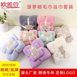 Toalla de Forro Polar Coral con Cuadrícula de Piña Juego de 2 Toallas de Baño con Bordeado Toalla de Playa Logo Personalizado OEM Estilo para Parejas