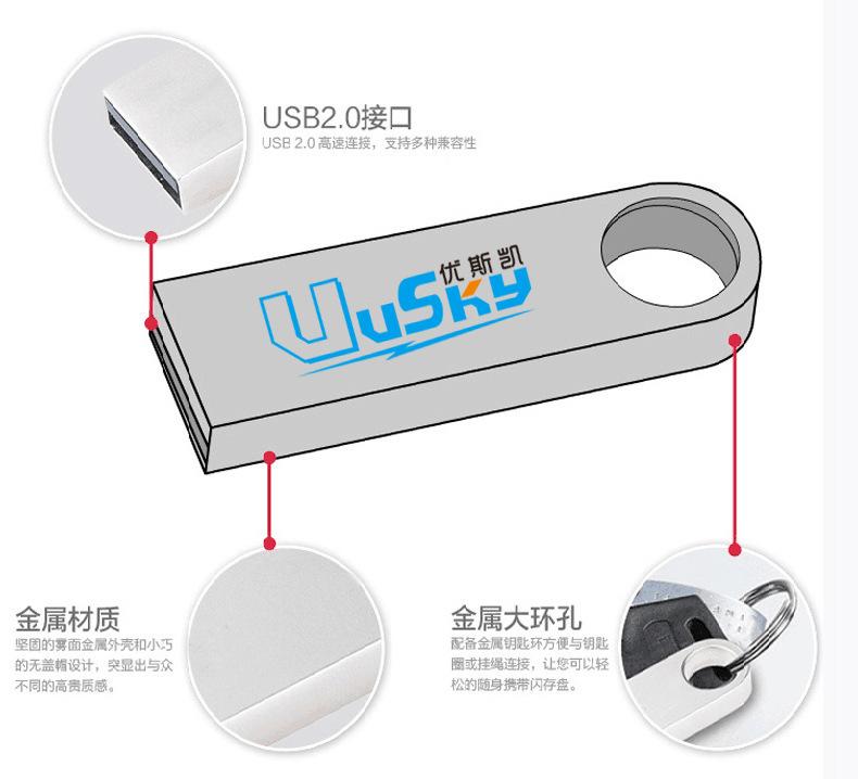 Grabado de fábrica en disco U al por mayor Música para coche Disco USB Metal Unidad flash USB 16 GB Regalo Alta velocidad 8G Disco U 64g Se puede personalizar