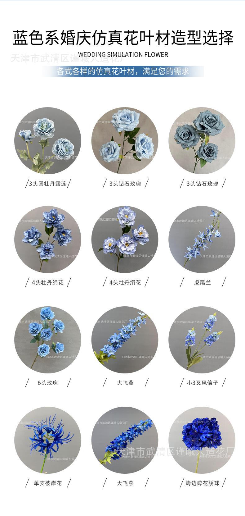 Compra 2025 Nueva Flor Artificial Azul Hotel Hogar Decoración Arreglo Floral Boda Flor Artificial Azul Niebla Flor de Seda al por mayor en Joom.pro