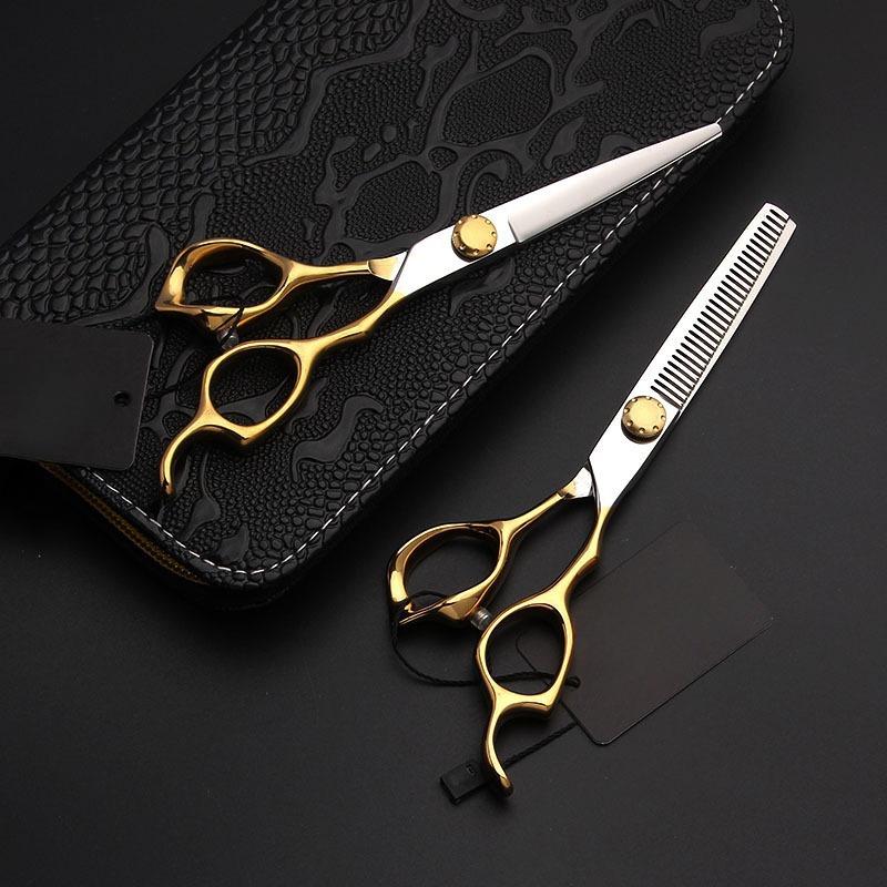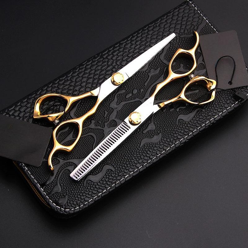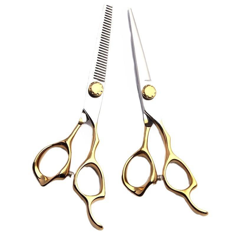 Herramientas de barbería Tijeras de peluquería Tijeras de dientes Tijeras para cabello Tijeras de corte de pelo de peluquero Tijeras planas Medias tijeras de entresacar doradas de 6 pulgadas Pro