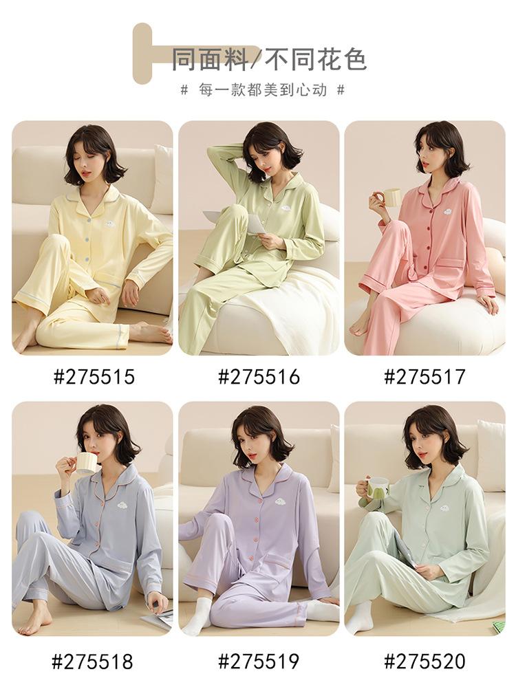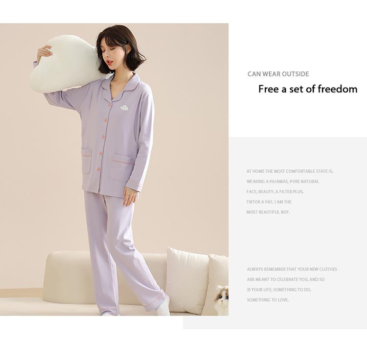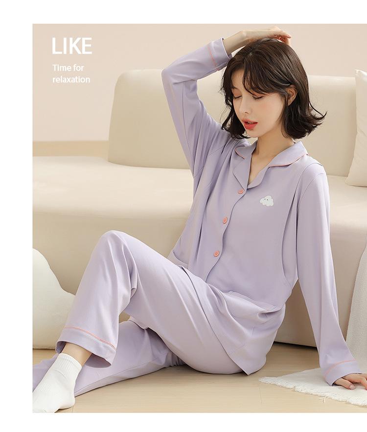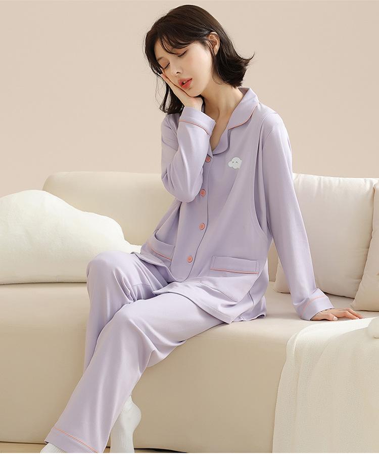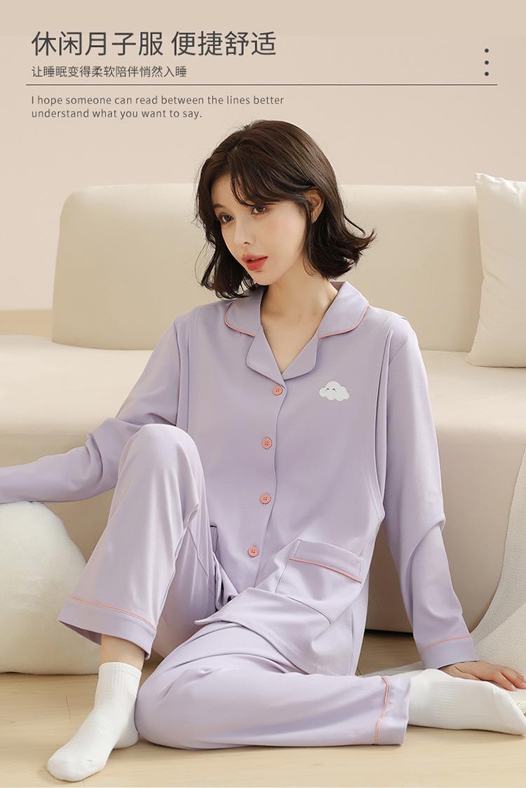 Pijamas de mujer otoño e invierno de manga larga de algodón puro estilo coreano cárdigan de color sólido simple ropa de confinamiento ropa de ocio primavera y otoño ropa de hogar traje