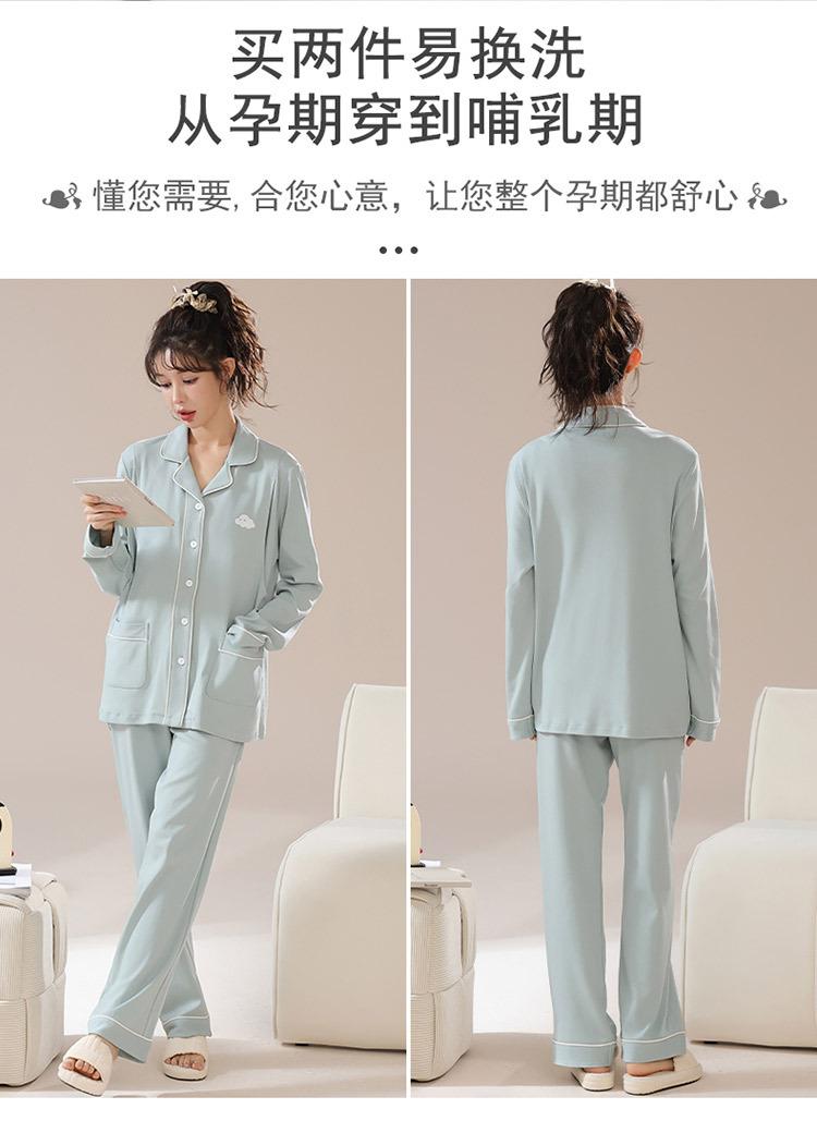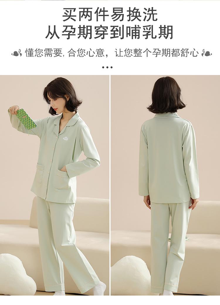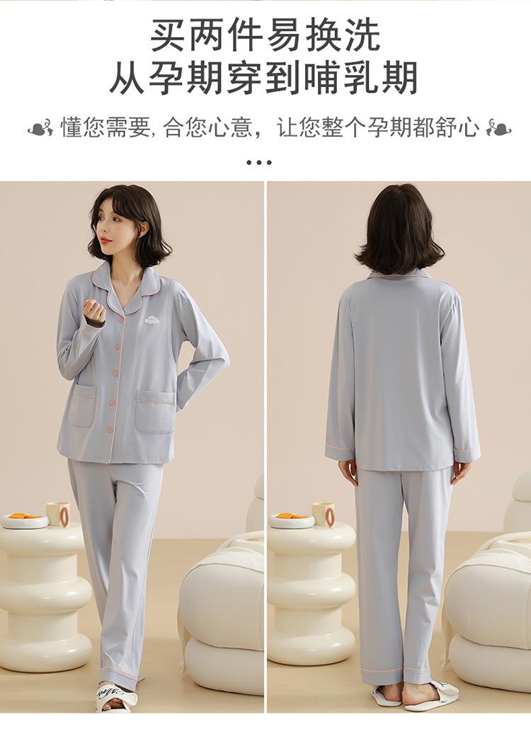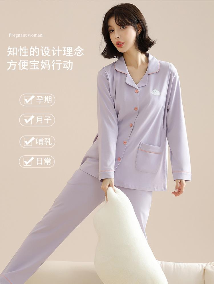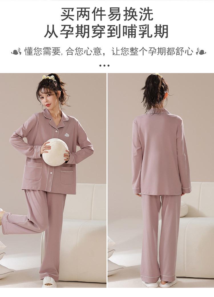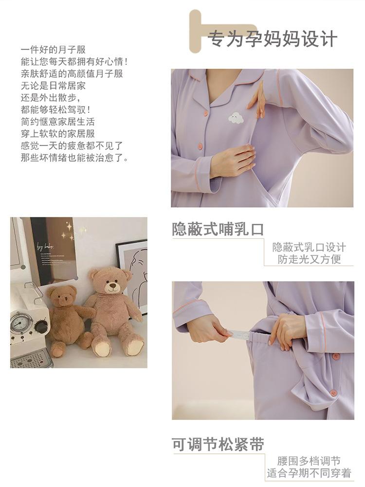 Ropa de confinamiento de alta gama, ajustada, de algodón puro, para embarazadas, prenatal y posparto, ropa de lactancia, pijamas de doble cara de 220 g, manga larga, otoño