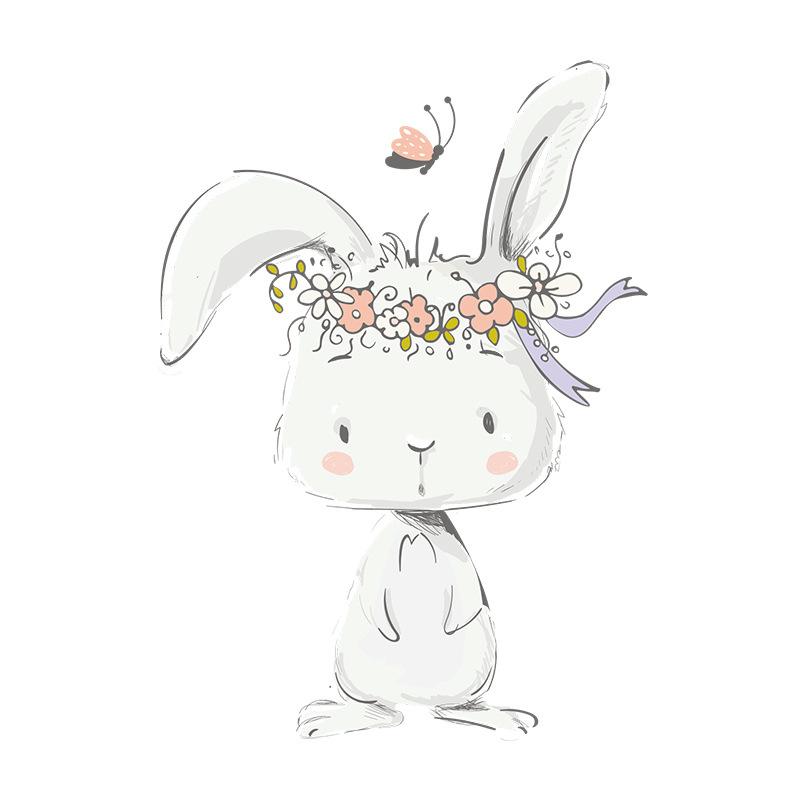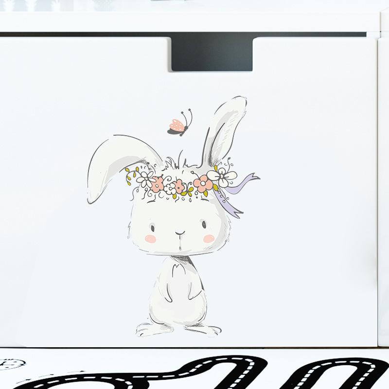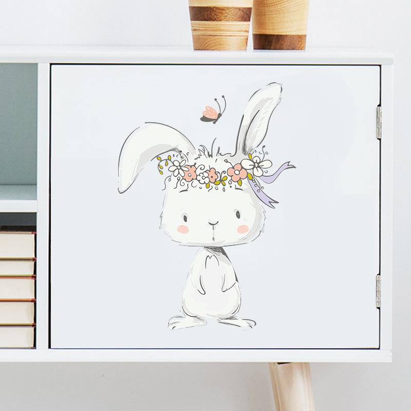 FX-F204 Lindo conejo de dibujos animados Mariposa Fondo de pared para habitación infantil Jardín de infantes Pegatinas de pared decorativas Autoadhesivas