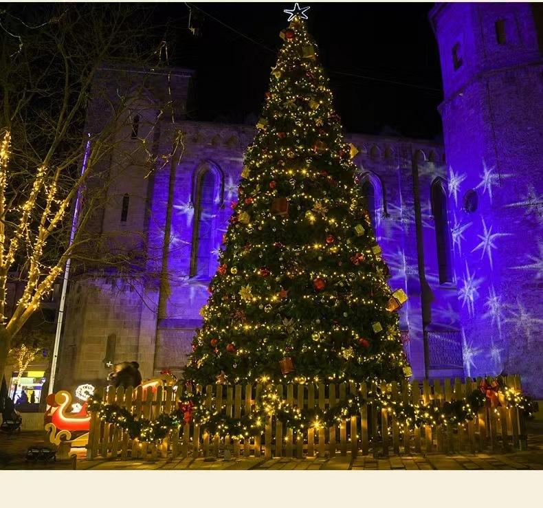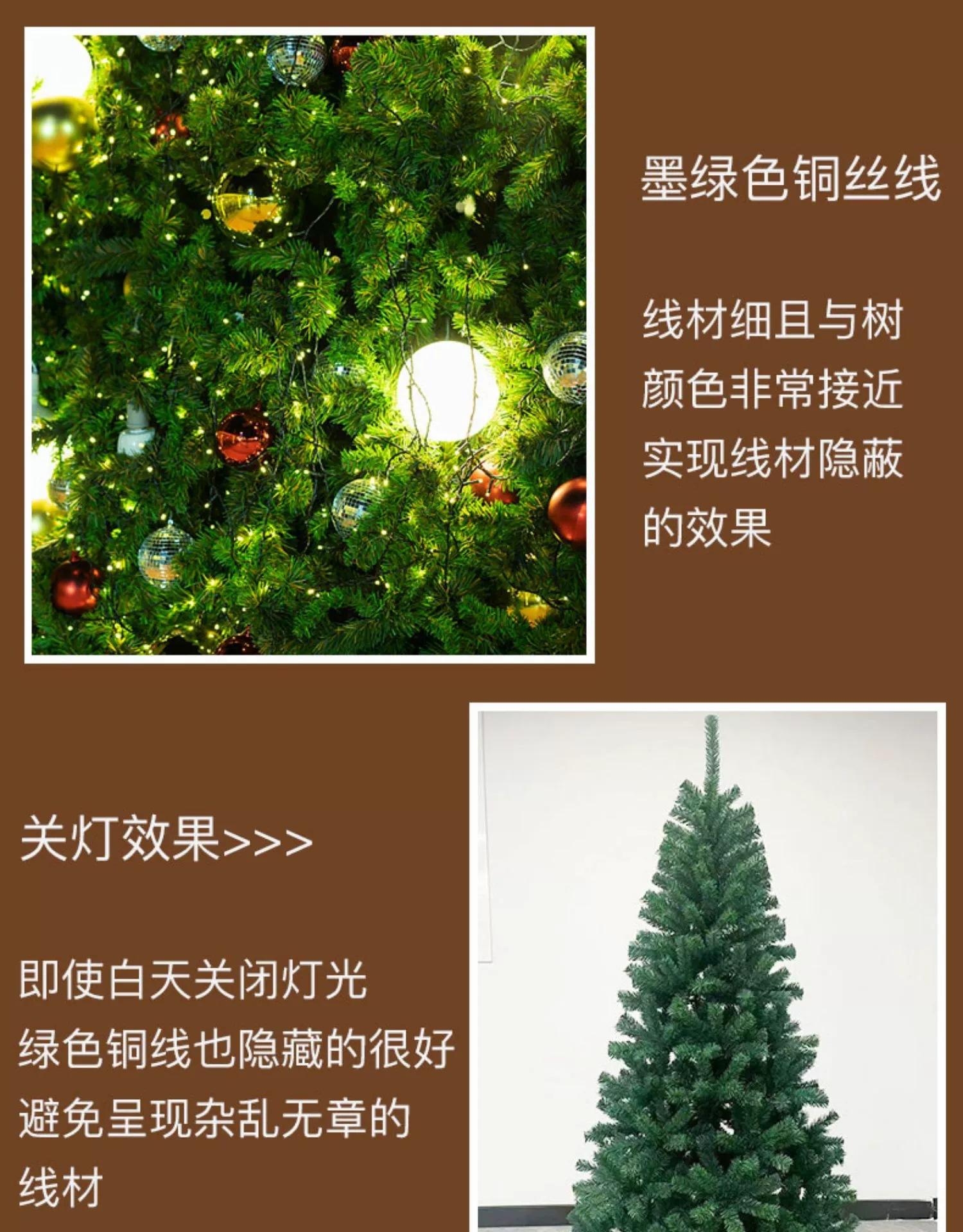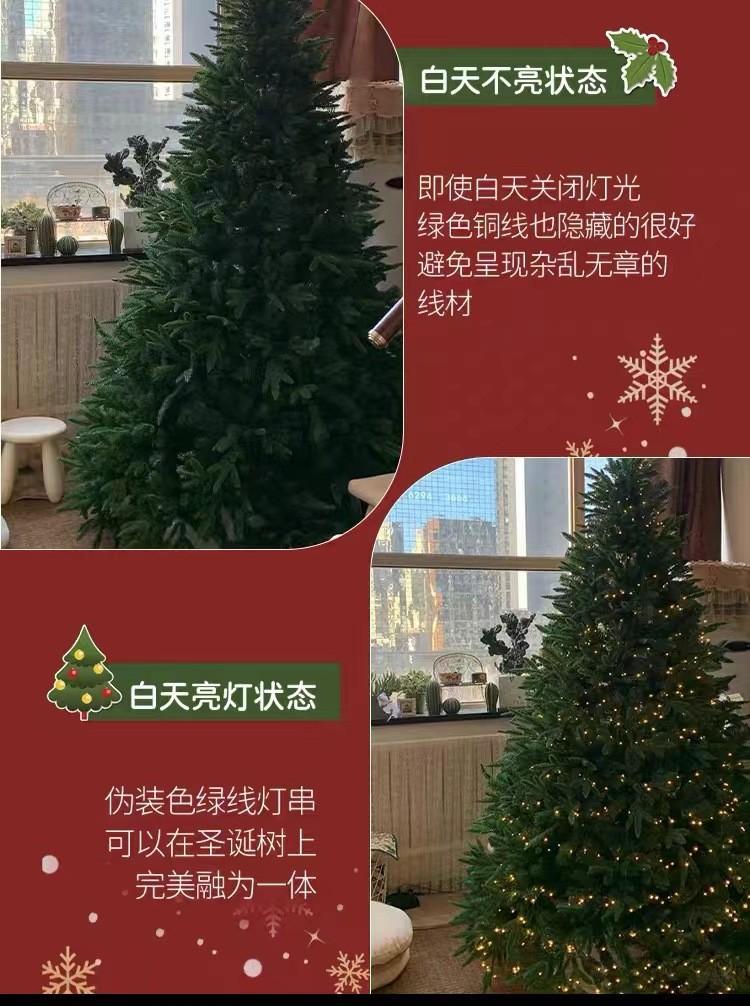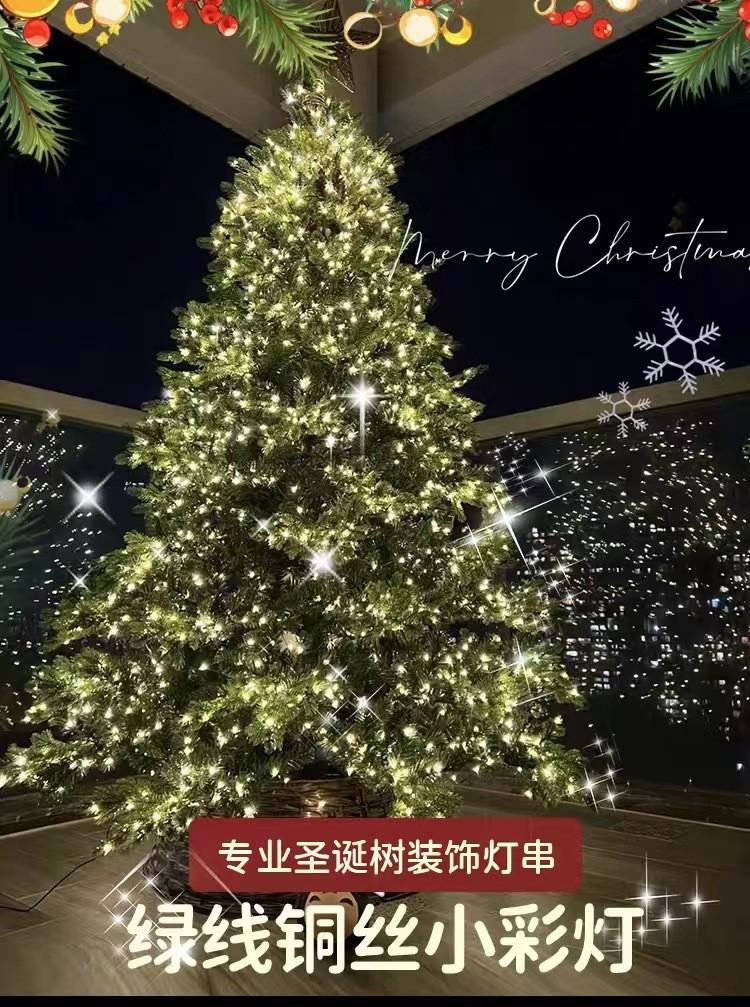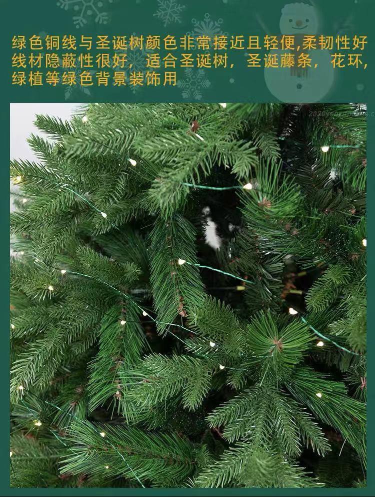 Árbol de Navidad transfronterizo con luces LED de alambre de cobre verde, atmósfera estrellada, decoración navideña de ratán con plantas verdes.