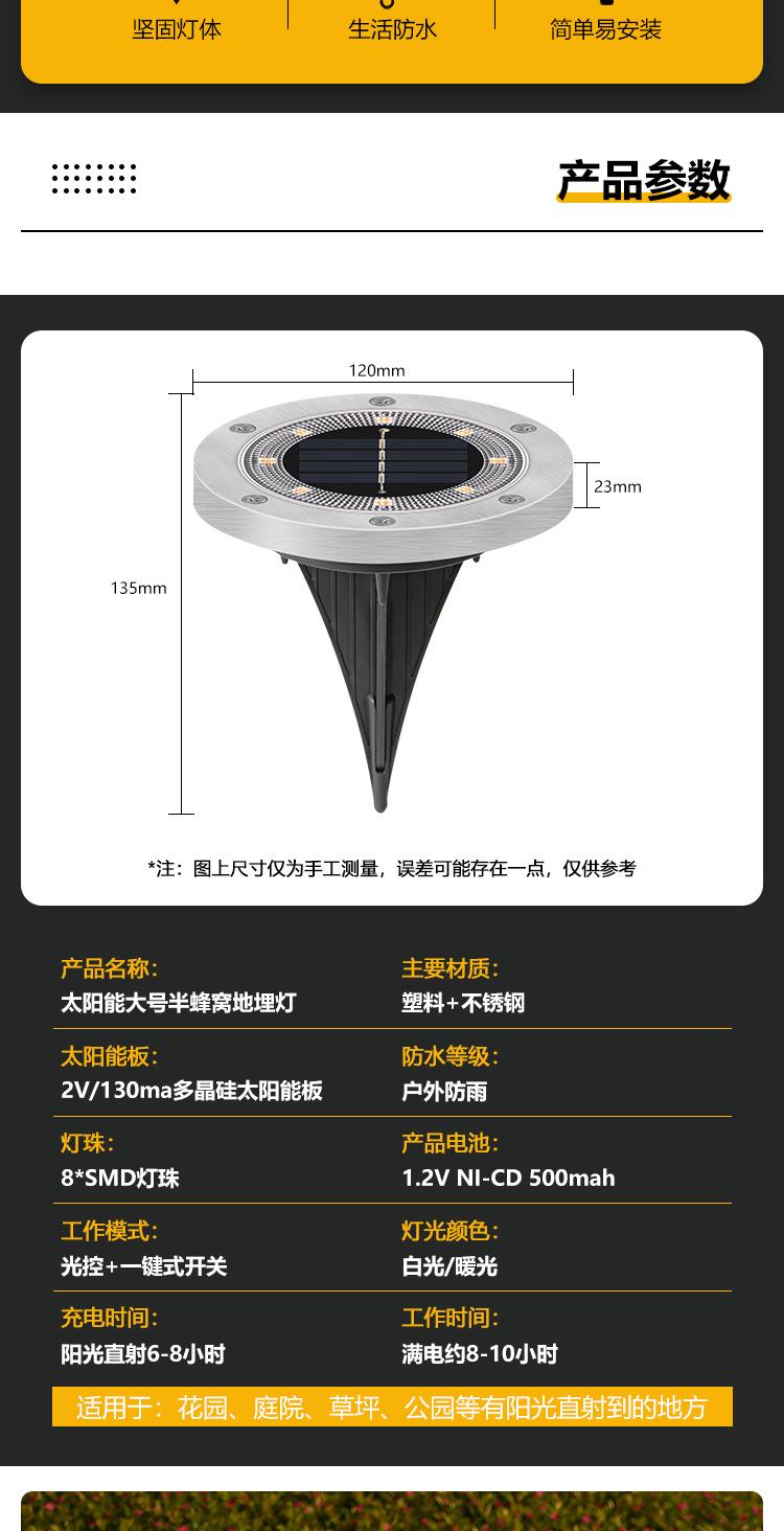 Large honeycomb underground lamp 8LED [white light]], Large honeycomb underground lamp 8LED [warm light]]