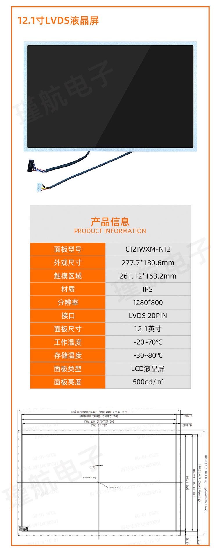 Pantalla LCD BoE 12.1 EV121WXM-N12 de control industrial para uso médico con brillo de 500 IPS disponible