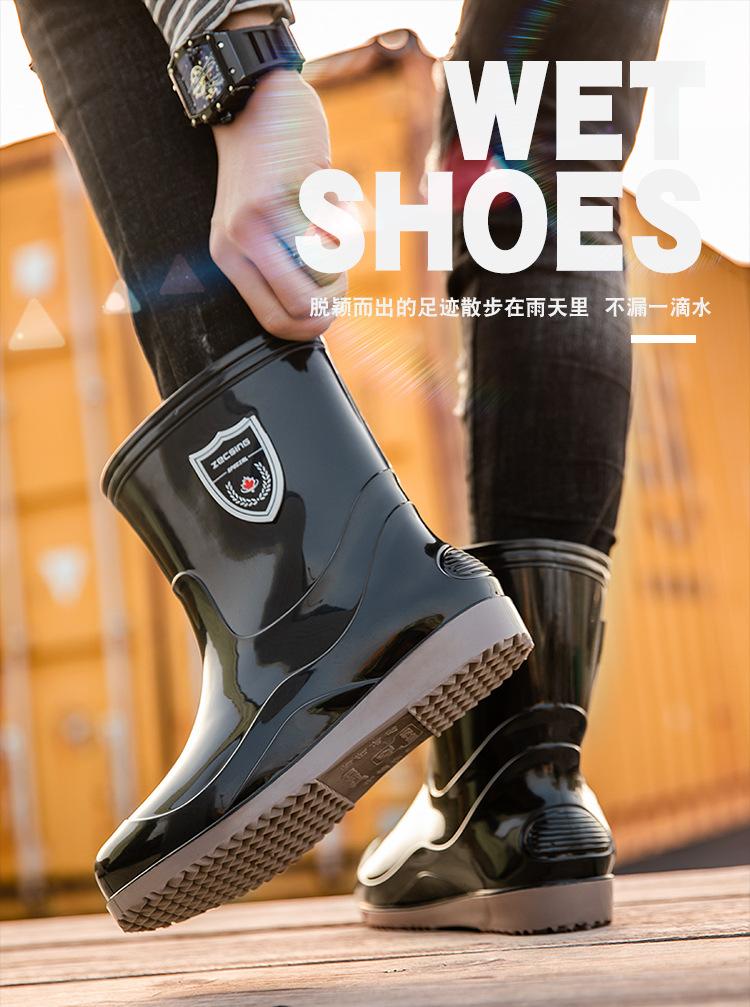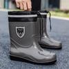 Botas de lluvia impermeables con cordón para hombre, zapatos de protección laboral de moda, botas de lluvia de media caña, zapatos impermeables, zapatos de goma antideslizantes para sitio de construcción, cálidos con forro polar