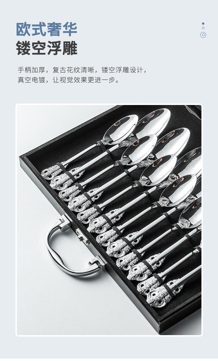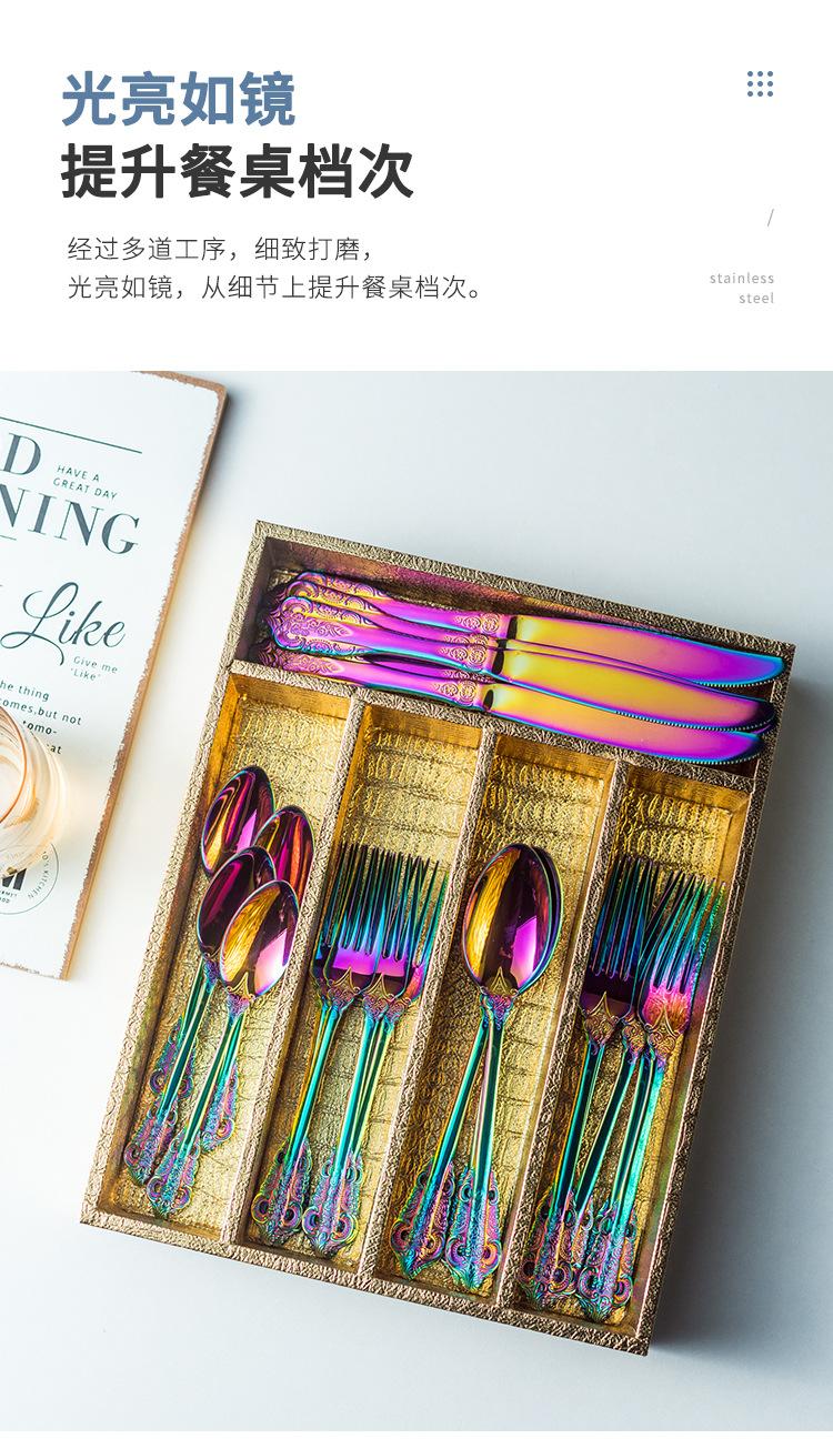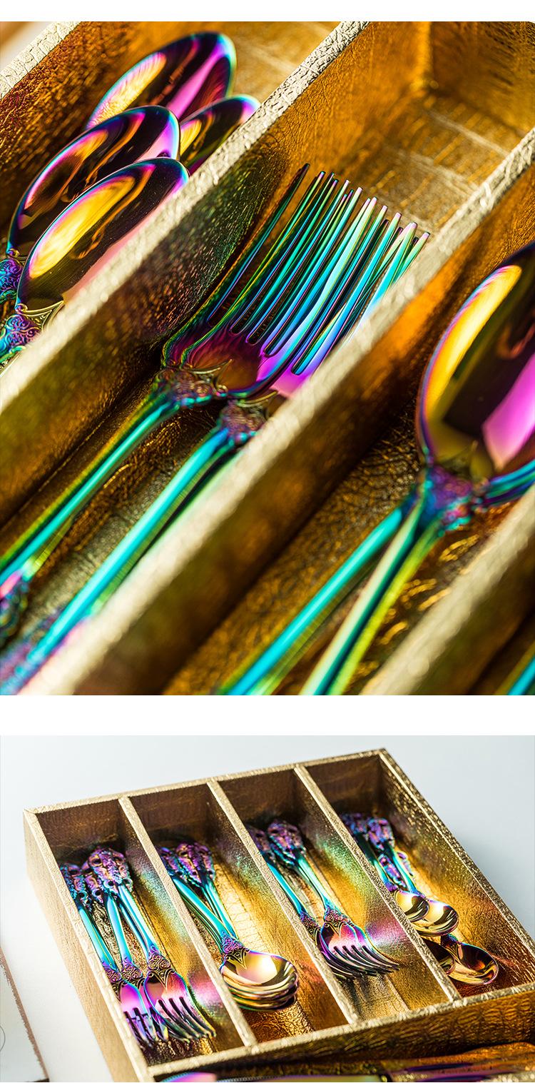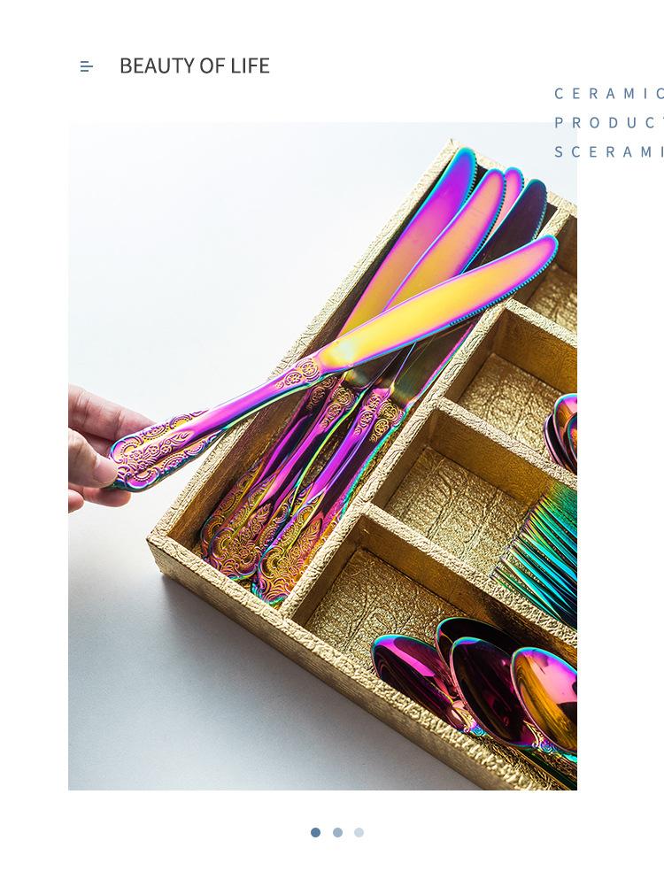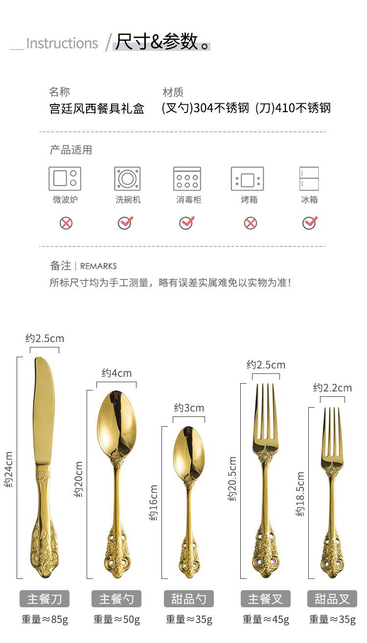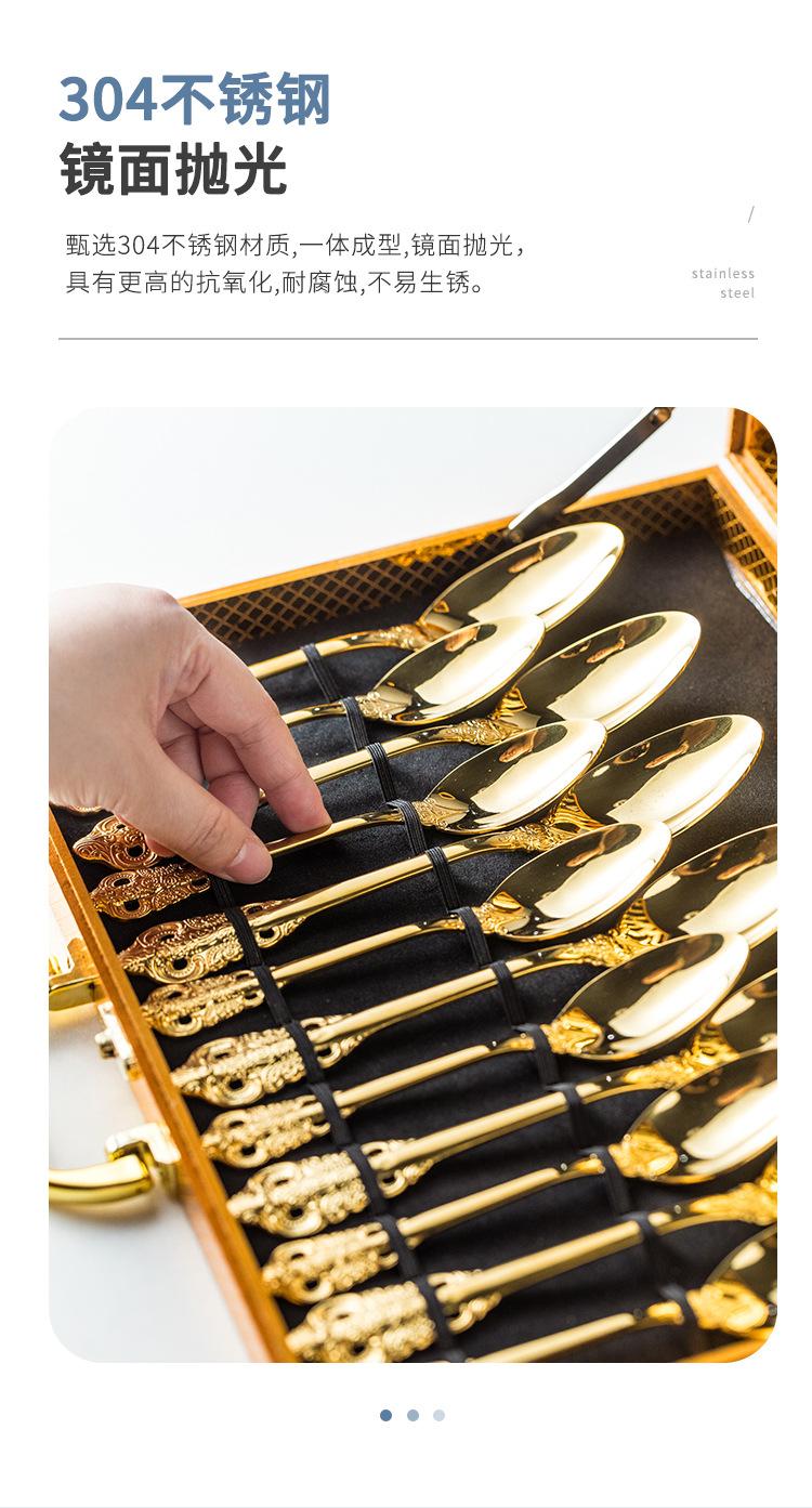 Vajilla europea de acero inoxidable 304 chapada en oro tallada para hotel, cuchillo para bistec, tenedor, cuchara de postre, juego de 24 piezas, caja de regalo