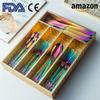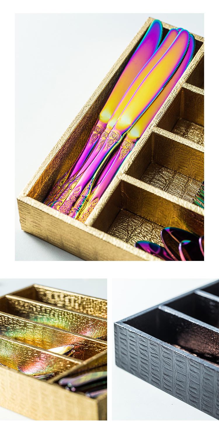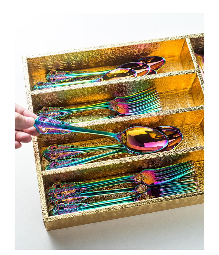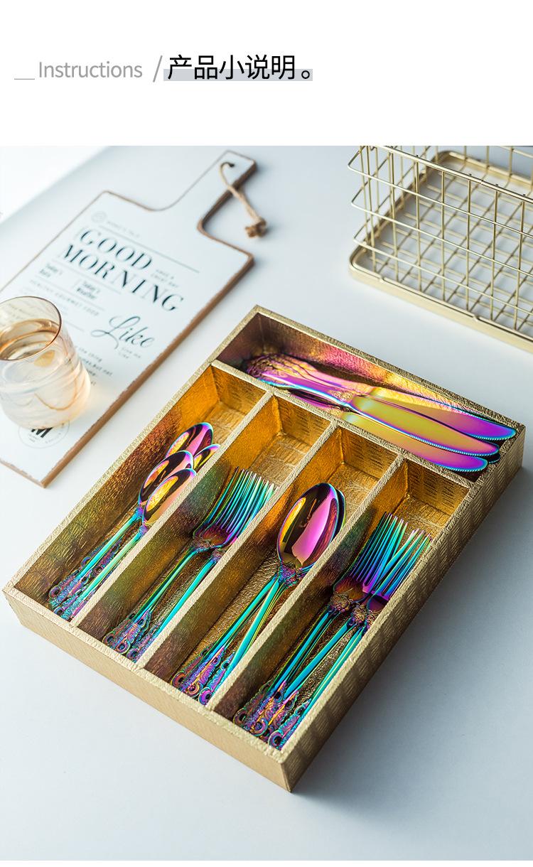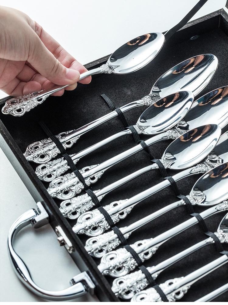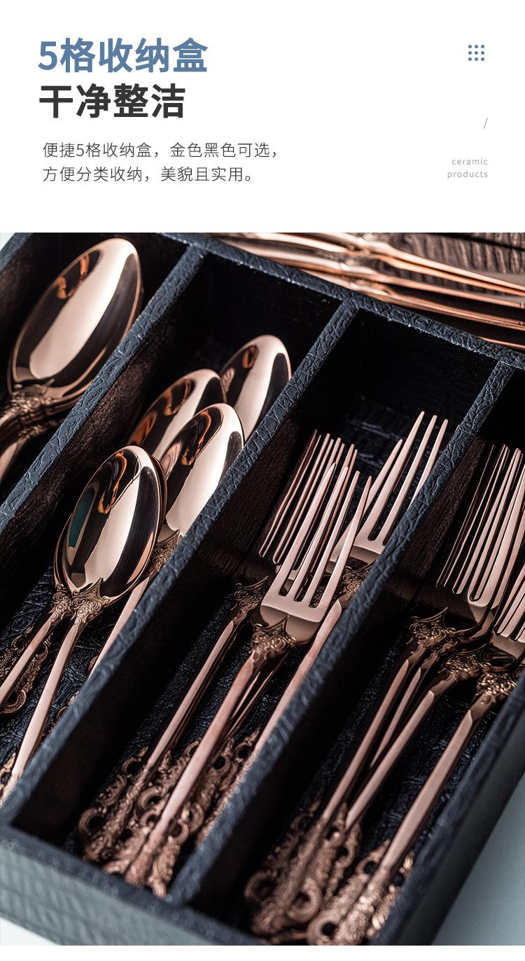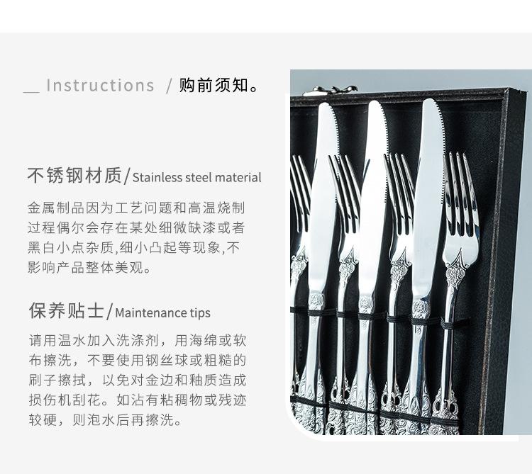 Vajilla europea de acero inoxidable 304 chapada en oro tallada para hotel, cuchillo para bistec, tenedor, cuchara de postre, juego de 24 piezas, caja de regalo