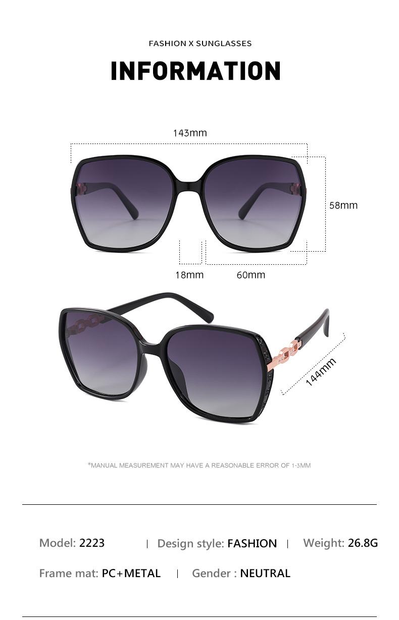 Nuevas gafas de sol con montura grande anti-UV para mujer, gafas de sol polarizadas HD, gafas de sol de tendencia de moda 2223