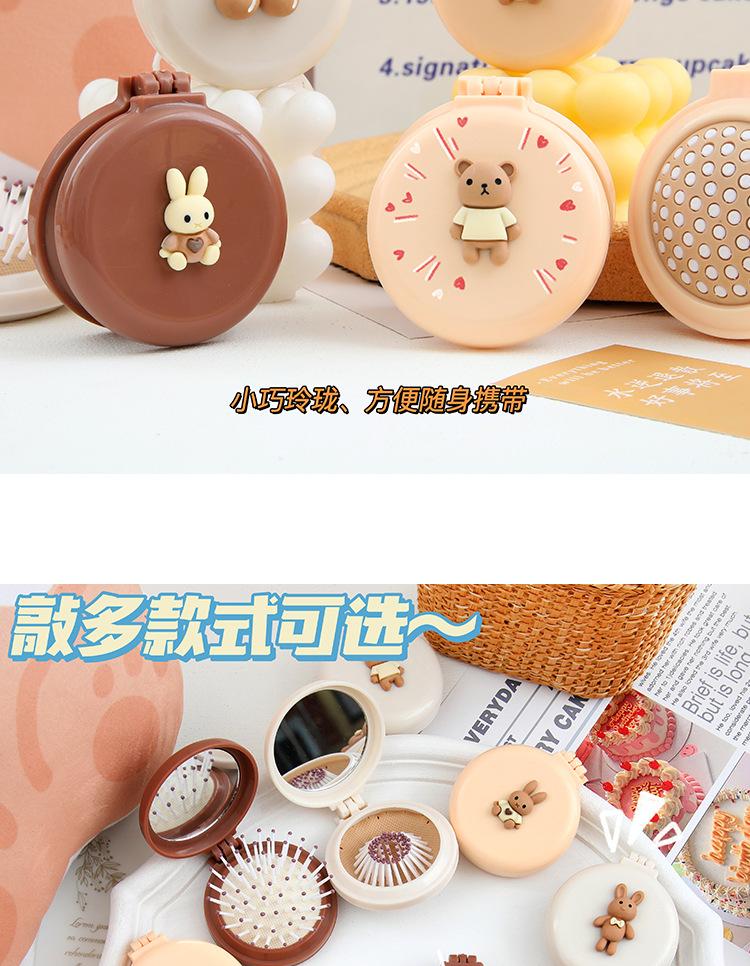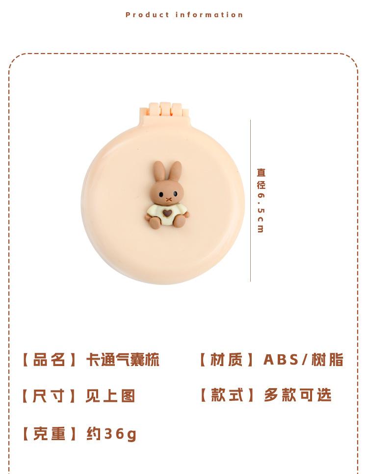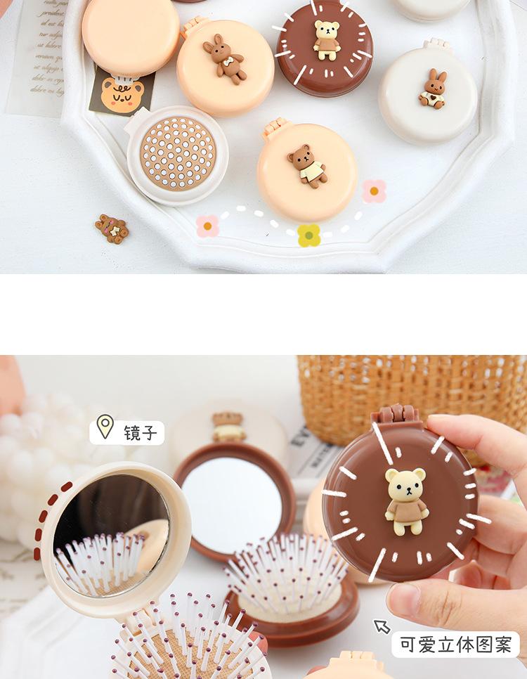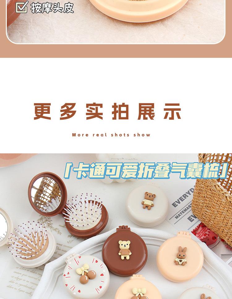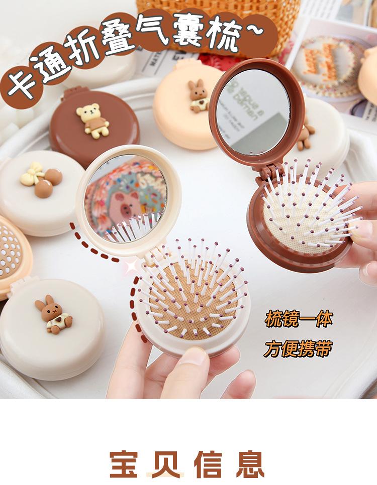 Peine de bolsa de aire, lindo peine de masaje plegable con forma de oso, peine con cojín de aire, mini peine portátil con espejo, una pieza, envío directo