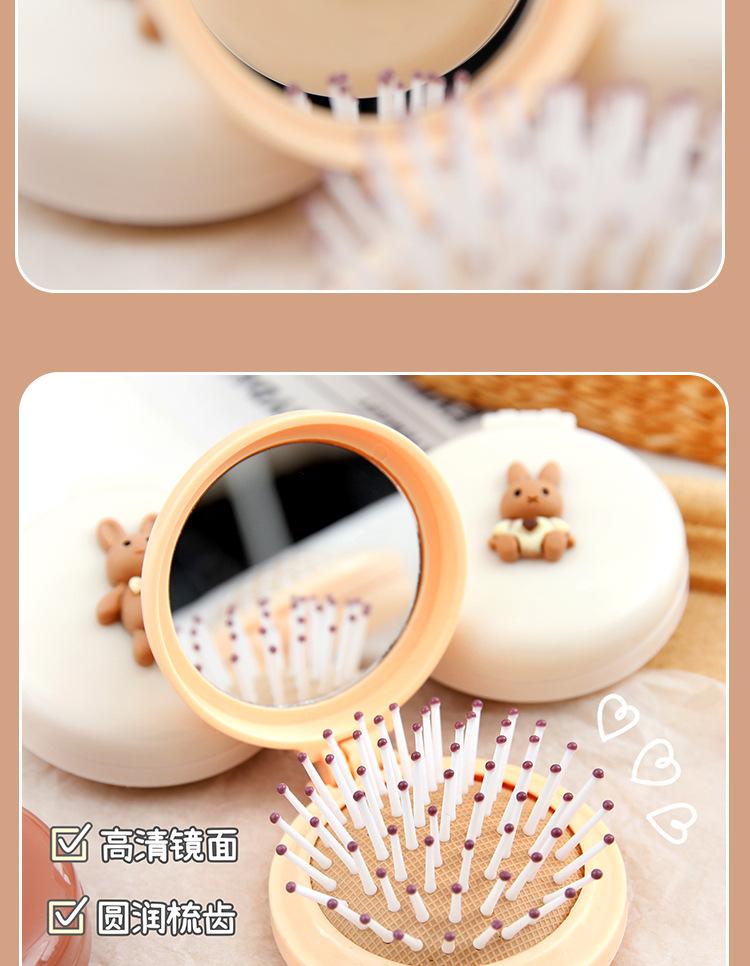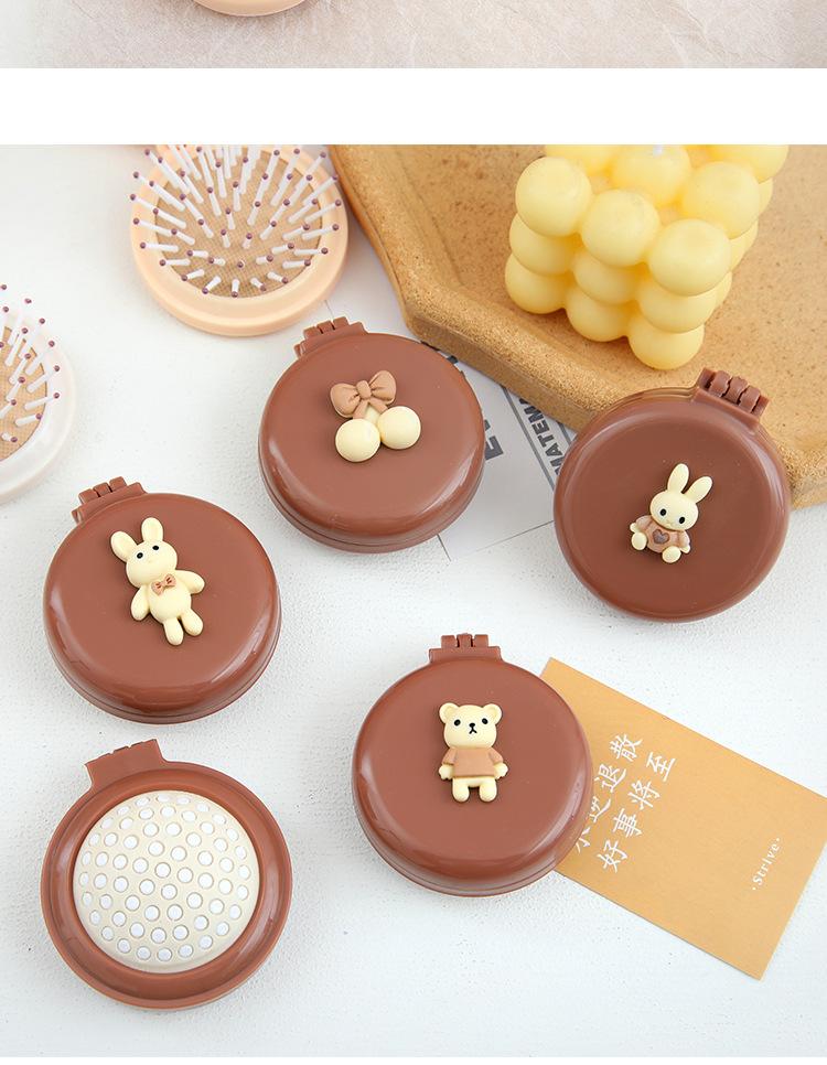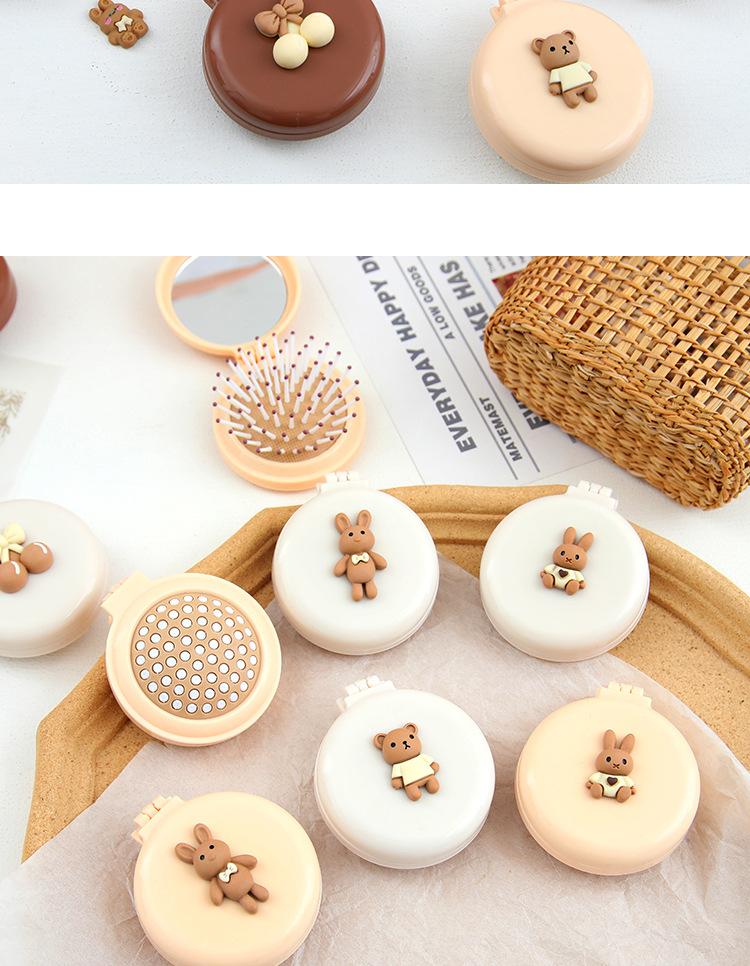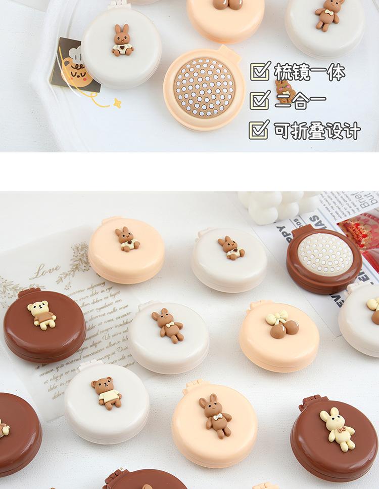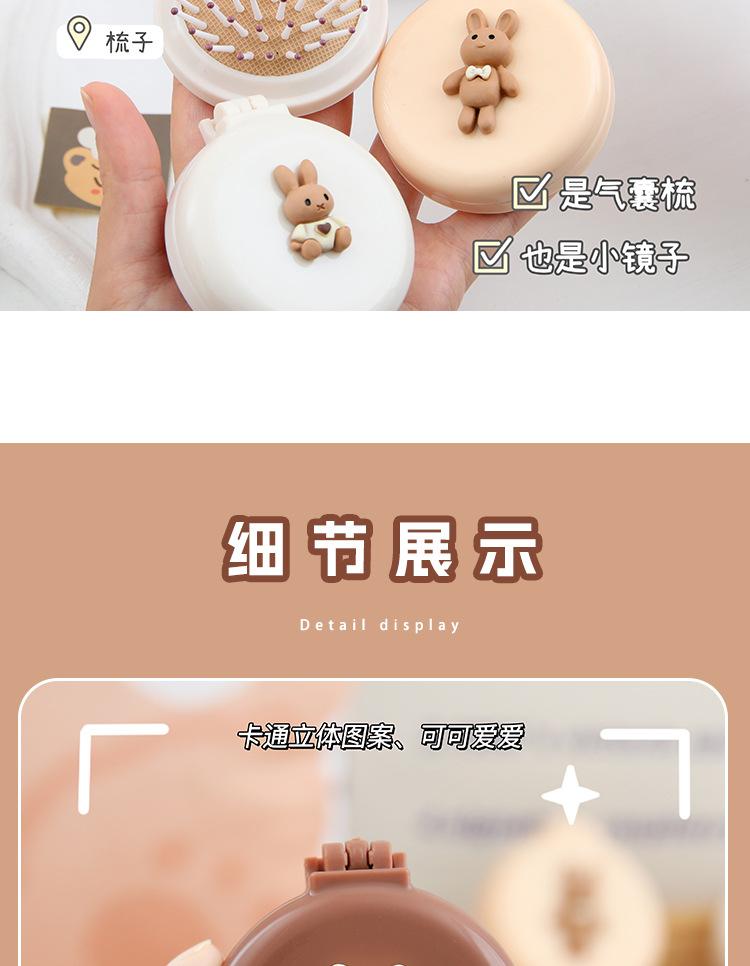 Peine de bolsa de aire, lindo peine de masaje plegable con forma de oso, peine con cojín de aire, mini peine portátil con espejo, una pieza, envío directo