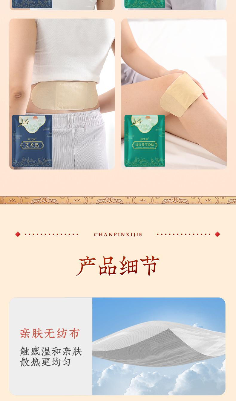 Elaborado con hojas secas de artemisa, una planta de la familia de las asteráceas. Es de color gris, suave como el terciopelo, inflamable sin llama, con un aroma fragante y apto para la moxibustión. Según el grado de procesamiento, existen diferentes grosores. Los más gruesos se utilizan principalmente para calentar agujas o fabricar varillas de moxa, mientras que los más finos se utilizan principalmente para fabricar varillas de moxa. Su textura mejora con el envejecimiento.