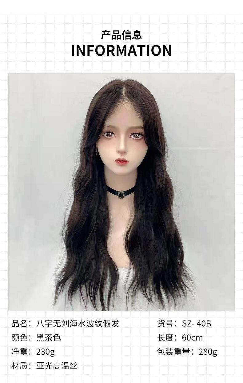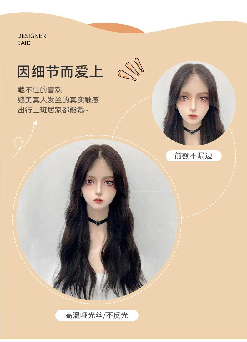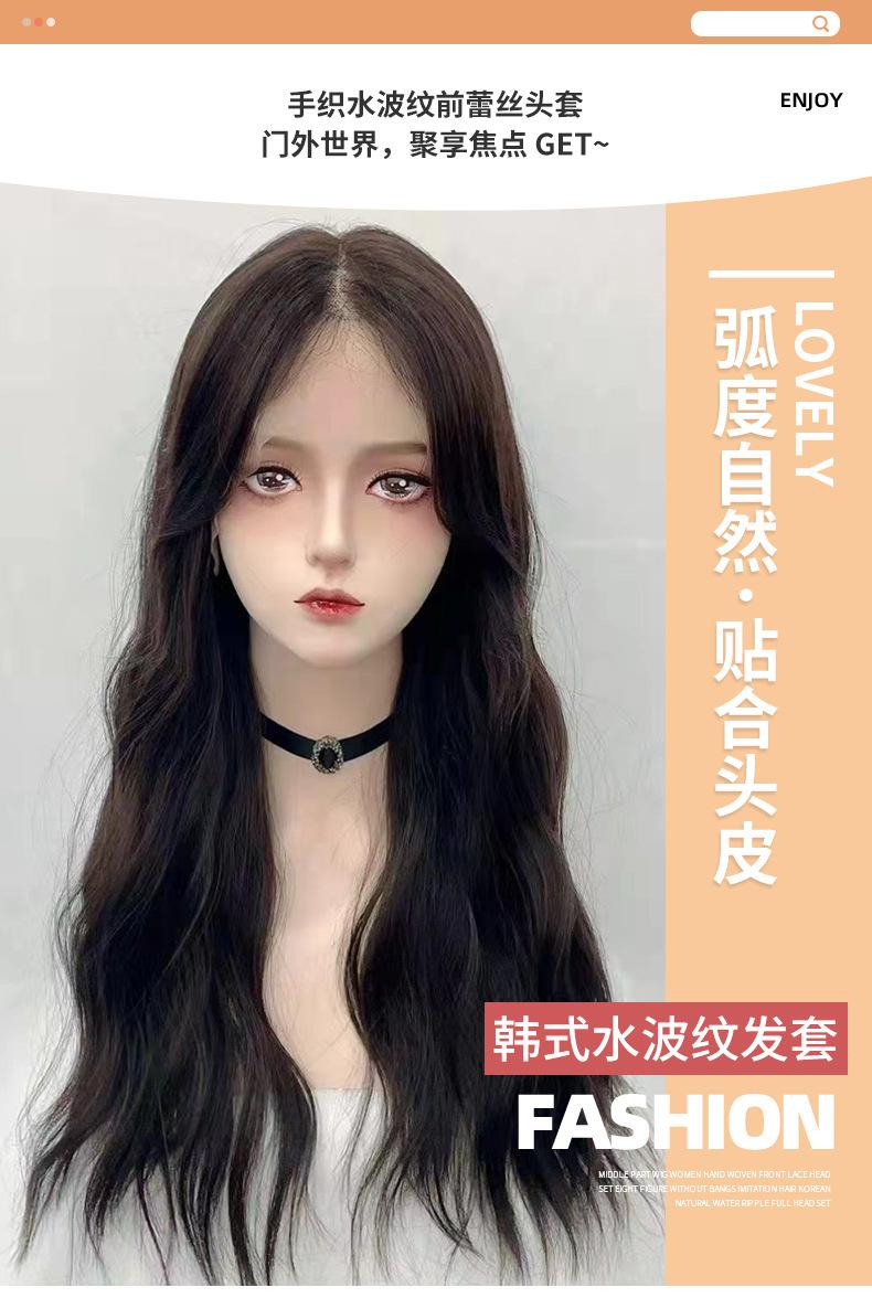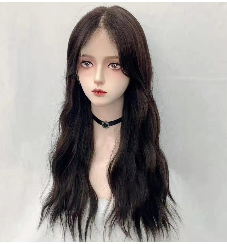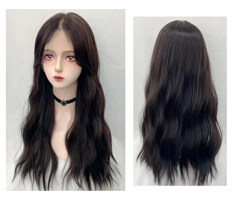 Peluca de Venta Directa Transfronteriza para Mujer, Peluca de Cabeza Completa, Estilo Coreano Onda de Agua Encaje Frontal, Raya Media, Sin Flequillo, Peluca Larga Rizada