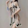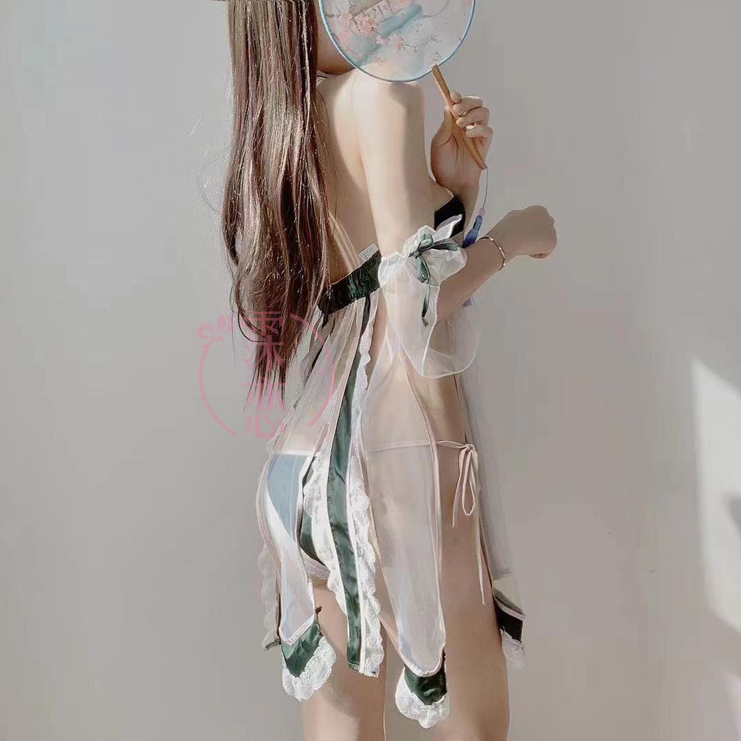 Ropa interior sexy Mu Love, uniforme tentación, camisón antiguo con cuello cruzado, pijama sexy de encaje puro