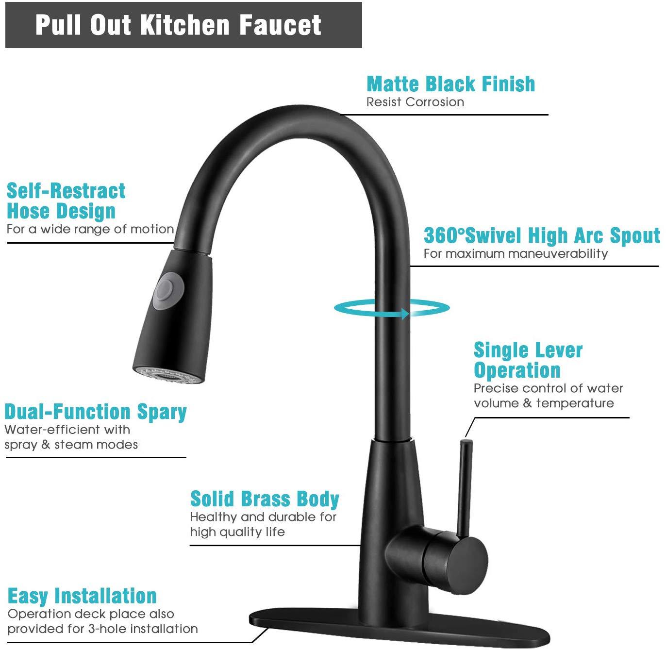 Grifo para lavabo de cocina americana, con rotación de 360 grados, grifo de agua fría y caliente de extracción rápida, venta al por mayor