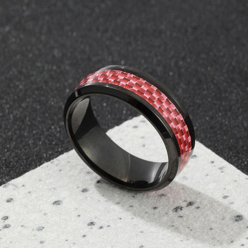 Suministro Transfronterizo Moda Joyería de Acero Inoxidable Anillo Simple de Fibra de Carbono Multicolor Acero Titanio Negro Anillo para Hombre